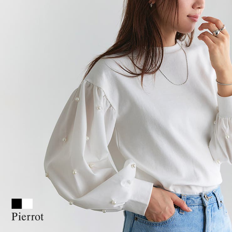 トレンドライクな“袖パールデザイントップス”身頃は程よい厚みとハリ感のあるポンチ素材を使用し着心地楽々。 袖を布帛で切り替えているのできれい見えを叶えます。 袖に贅沢に施したパールデザインで着映える一枚。 身幅は少し余裕を持たせながらもすっきりと着られるシルエットに仕上げました。 ※商品画像は着用イメージです。 光や角度により、実物と色味が異なる場合がございます。 また表示のサイズ感も実物とは若干異なる場合もございますので、予めご了承ください。 【お買い物を楽しむための方法】**商品のお気に入り登録**カートボタン横のハートをクリック!気になるアイテムがお得になると通知が届きます。 チャンスをのがしません♪**ブランドのお気に入り登録**ブランドトップページの「お気に入りに追加」をクリック!新商品の情報を受け取ることができます。 【ブランド】Perrot(ピエロ)【スペック】■実寸(約cm)M:身丈58.5cm|肩幅51cm|バスト48cm|袖丈50cm|袖口幅10cm|脇口幅18cm|裾幅51cm|L:身丈60.5cm|肩幅53cm|バスト50cm|袖丈50cm|袖口幅10cm|脇口幅19cm|裾幅53cm|※実寸(平置きした状態でメジャー計測)の為、タグ表記のサイズとは異なります。 ■素材[本体]ポリエステル65%/綿35%[別布]ポリエステル86%/綿14%■洗濯表示液温は40℃を限度とし、ネットを使用し洗濯機で弱い洗濯ができる塩素系及び酸素系漂白剤の使用禁止タンブル乾燥禁止日陰のつり干しがよい底面温度120℃を限度としてアイロン仕上げができる(あて布使用)ドライクリーニング禁止■備考透け感(淡色):あり透け感(濃色):なし伸縮性:本体のみあり裏地:なしポケット:なしファスナー:なしオフホワイトは透け感が生じます。 ■ご注意・生地のカッティングにより画像と異なる場合がございます。 同商品、同色におきましても色(染料)やロットによって伸縮性・伸び率、裁断上ずれなどが生じてしまう現象があります。 また、プリント加工の際に、インク飛びが目立ってしまう場合がございますが、手法上致し方ない現象となりますので、なにとぞご了承くださいませ。 ・同生産時期でも、色、サイズ、デザイン、素材の質感が多少異なる場合がございます。 サイズ詳細などの測り方はスタッフ間で統一、徹底はしておりますが、若干の誤差(約2〜3cm誤差)がある場合がございます。 また、ニット製品は生産の過程上「生地を織る際の糸の継ぎ目」繊維の「混紡」、プレス加工、製品洗い加工によって形やサイズ(5cm前後)に誤差が生じる場合がございますが品質上の問題はございません。 返品・交換について購入後の交換は受け付けておりません。 予めご了承ください。 返品を希望される場合は購入履歴一覧の「ショップへの問い合わせ」よりお問い合わせください。 =========================複数配送先指定について1件の注文に対して、異なる住所への配送は対応出来かねます。 恐れ入りますが、異なる住所へ配送をご希望の場合、配送先毎に分けて注文いただきますようお願い申し上げます。 【トップスWOMEN】ブラック オフホワイト M Lブラック オフホワイト 【20%OFF!2/5(木)限定】Pierrot 袖パールデザイントップス ☆ カットソー ポンチ素材 布帛切り替え パールデザイン トップス トレンドライク ピエロ トップス 3,477 ~