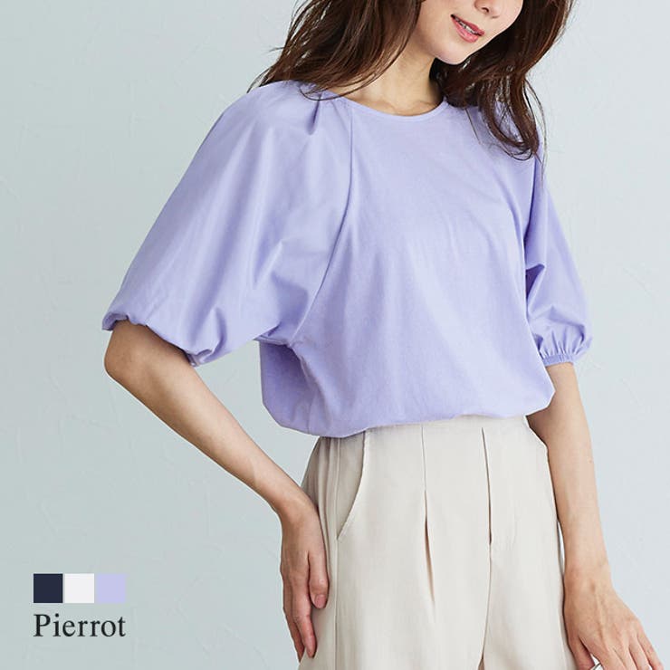 楽に着られて着映えする“パフスリーブTシャツ”綿100%素材を使用しているので、素肌に優しくストレスフリーな肌触りが魅力。 吸水性が高く、通気性が良いので快適な着心地をキープします。 袖は綿混のシャツ素材にすることで程良くハリ感があり、異素材使いがお洒落な雰囲気に仕上げてくれます。 タックを施し立体的に仕上げたパフスリーブが、女性らしいデザインTシャツ。 五分袖で肩や二の腕周りをカバーしてくれるところも魅力。 楽に着られて着映えする優秀アイテムです。 ※商品画像は着用イメージです。 光や角度により、実物と色味が異なる場合がございます。 また表示のサイズ感も実物とは若干異なる場合もございますので、予めご了承ください。 【お買い物を楽しむための方法】**商品のお気に入り登録**カートボタン横のハートをクリック!気になるアイテムがお得になると通知が届きます。 チャンスをのがしません♪**ブランドのお気に入り登録**ブランドトップページの「お気に入りに追加」をクリック!新商品の情報を受け取ることができます。 【ブランド】Pierrot(ピエロ)【スペック】■サイズ M/L■実寸(約cm)【身丈/裄丈/バスト/袖口/脇口/裾幅】M:59/48.5/47/10.5/29/50L:61/49.5/49/10.5/30/52※実寸(平置きした状態でメジャー計測)の為、タグ表記のサイズとは異なります。 ■素材[本体]綿100% [別布]ポリエステル85%/綿15%■洗濯表示液温は40℃を限度とし、ネットを使用し洗濯機で弱い洗濯処理ができる塩素系及び酸素系漂白剤の使用禁止タンブル乾燥禁止日陰のつり干しがよい底面温度110℃を限度としてアイロン仕上げができる(あて布使用)ドライクリーニング禁止■備考透け感(淡色):あり透け感(濃色):なし伸縮性:身頃部分のみあり裏地:なしポケット:なし生地の特性上少し毛羽たちが生じます。 オフホワイトに透け感が生じます。 ■ご注意・生地のカッティングにより画像と異なる場合がございます。 同商品、同色におきましても色(染料)やロットによって伸縮性・伸び率、裁断上ずれなどが生じてしまう現象があります。 また、プリント加工の際に、インク飛びが目立ってしまう場合がございますが、手法上致し方ない現象となりますので、なにとぞご了承くださいませ。 ・同生産時期でも、色、サイズ、デザイン、素材の質感が多少異なる場合がございます。 サイズ詳細などの測り方はスタッフ間で統一、徹底はしておりますが、若干の誤差(約2〜3cm誤差)がある場合がございます。 また、ニット製品は生産の過程上「生地を織る際の糸の継ぎ目」繊維の「混紡」、プレス加工、製品洗い加工によって形やサイズ(5cm前後)に誤差が生じる場合がございますが品質上の問題はございません。 返品・交換について購入後の交換は受け付けておりません。 予めご了承ください。 返品を希望される場合は購入履歴一覧の「ショップへの問い合わせ」よりお問い合わせください。 =========================複数配送先指定について1件の注文に対して、異なる住所への配送は対応出来かねます。 恐れ入りますが、異なる住所へ配送をご希望の場合、配送先毎に分けて注文いただきますようお願い申し上げます。 【トップスWOMEN】ネイビー オフホワイト ブルーラベンダー M Lネイビー オフホワイト ブルーラベンダー 【10%OFFクーポン!2/10(火)1:59まで】Pierrot パフスリーブTシャツ ☆ Tシャツ 半袖Tシャツ パフスリーブ 綿100% コットン シンプル 半袖 着映え フェミニン 洗濯機OK カットソー ネイビー 白 レディース 夏 ピエロ P 2,072 ~