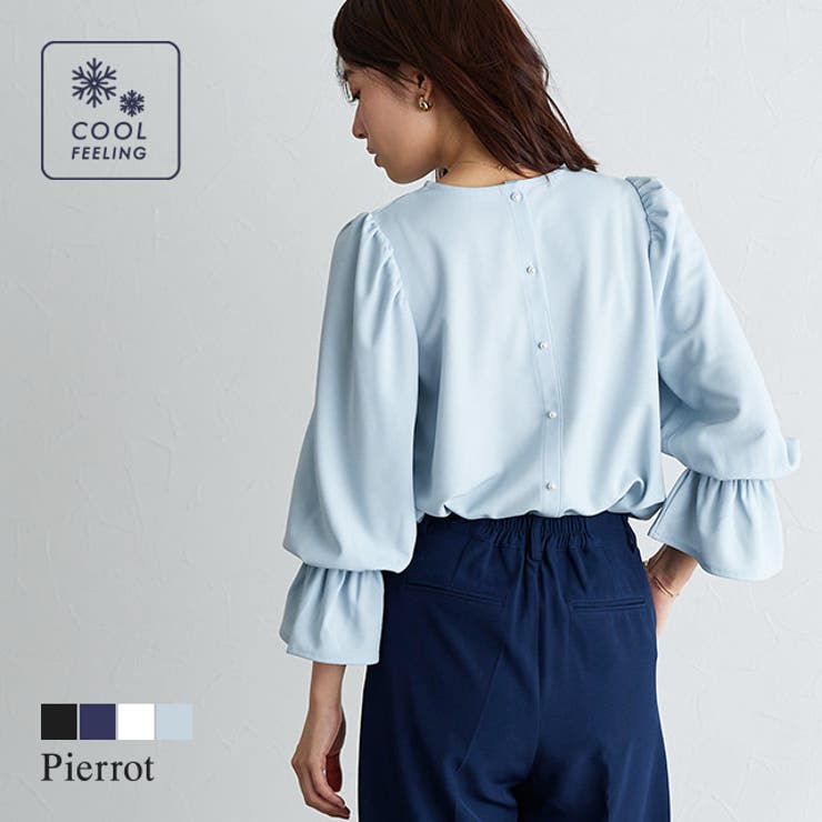 上品な女性らしさ漂う“バックボタンキャンディスリーブTブラウス” 程良い落ち感がきちんとした印象をプラスし“カットソーなのにブラウス見え”を叶えるカットジョーゼット素材。 キャンディスリーブが女性らしいTブラウス。 袖口はゴム仕様なので、腕まくりしても自然とラフなボリュームに。 フロントはシンプルなデザインですが、後ろのパールボタンがワンポイントになり、女性らしさ漂うバックスタイルに仕上げてくれます。 ※商品画像は着用イメージです。 光や角度により、実物と色味が異なる場合がございます。 また表示のサイズ感も実物とは若干異なる場合もございますので、予めご了承ください。 【お買い物を楽しむための方法】 **商品のお気に入り登録** カートボタン横のハートをクリック! 気になるアイテムがお得になると通知が届きます。 チャンスをのがしません♪ **ブランドのお気に入り登録** ブランドトップページの「お気に入りに追加」をクリック!新商品の情報を受け取ることができます。 【ブランド】 Pierrot(ピエロ)【スペック】■サイズM/L■実寸(約cm)【身丈/肩幅/バスト/袖丈/袖口幅/脇口幅/裾幅】M:60/31/48/60/8.5/20/55L:62/33/50/60/8.5/21/57※実寸(平置きした状態でメジャー計測)の為、タグ表記のサイズとは異なります。 ■素材ポリエステル95%/ポリウレタン5%■洗濯表示液温は30℃を限度とし、ネットを使用し洗濯機で非常に弱い洗濯処理ができる塩素系及び酸素系漂白剤の使用禁止タンブル乾燥禁止日陰のつり干しがよい底面温度110℃を限度としてアイロン仕上げができる(あて布使用)石油系溶剤による弱いドライクリーニングができる■備考透け感(淡色):あり透け感(濃色):なし伸縮性:あり裏地:なしポケット:なしファスナー:なしオフホワイトに透け感が生じます。 ■ご注意・生地のカッティングにより画像と異なる場合がございます。 同商品、同色におきましても色(染料)やロットによって伸縮性・伸び率、裁断上ずれなどが生じてしまう現象があります。 また、プリント加工の際に、インク飛びが目立ってしまう場合がございますが、手法上致し方ない現象となりますので、なにとぞご了承くださいませ。 返品・交換について購入後の交換は受け付けておりません。 予めご了承ください。 返品を希望される場合は購入履歴一覧の「ショップへの問い合わせ」よりお問い合わせください。 =========================複数配送先指定について1件の注文に対して、異なる住所への配送は対応出来かねます。 恐れ入りますが、異なる住所へ配送をご希望の場合、配送先毎に分けて注文いただきますようお願い申し上げます。 【トップスWOMEN】ブラック ネイビー オフホワイト サックス M Lブラック ネイビー オフホワイト サックス 【20%OFF!2/5(木)限定】Pierrot バックボタンキャンディスリーブTブラウス ☆ Tブラウス キャンディスリーブ カットジョーゼット バックボタン パールボタン シンプル 黒 白 春 ピエロ トップス 2,231 ~