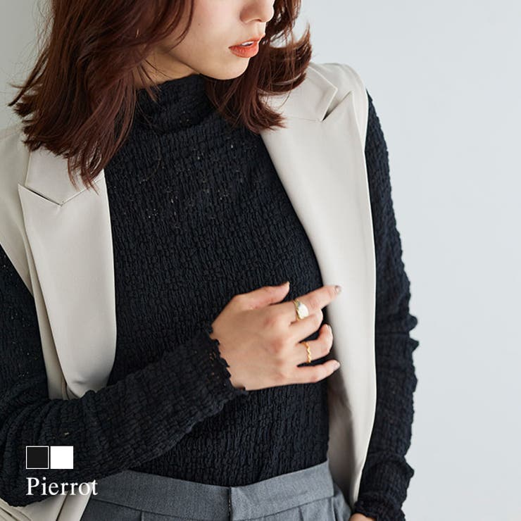 レイヤードスタイルにも女性らしさをプラス“フラワーレースカットソー”さりげない花柄と程良い透け感のあるレースが女性らしさ溢れる素材使い。 綿混で伸縮性があり着心地の良い一枚です。 袖は少し長めに設定し、くしゅっと出来る袖丈に仕上げました。 ボトルネックと程良くフィットするサイズ感が、シャツやニットのアクセントとしてインナー使いにも最適なアイテムです。 ※商品画像は着用イメージです。 光や角度により、実物と色味が異なる場合がございます。 また表示のサイズ感も実物とは若干異なる場合もございますので、予めご了承ください。 【お買い物を楽しむための方法】**商品のお気に入り登録**カートボタン横のハートをクリック!気になるアイテムがお得になると通知が届きます。 チャンスをのがしません♪**ブランドのお気に入り登録**ブランドトップページの「お気に入りに追加」をクリック!新商品の情報を受け取ることができます。 【ブランド】Pierrot(ピエロ)【スペック】■サイズM/L■実寸(約cm)【身丈/肩幅/バスト/袖丈/袖口幅/脇口幅/裾幅】M:63/35/39/59/8.5/18.5/39L:65/37/41/59/8.5/19.5/41※実寸(平置きした状態でメジャー計測)の為、タグ表記のサイズとは異なります。 ■素材ナイロン60%/綿30%/ポリウレタン10%■洗濯表示液温は40℃を限度とし、手洗いができる塩素系及び酸素系漂白剤の使用禁止タンブル乾燥禁止底面温度110℃を限度としてアイロン仕上げができる(あて布使用)石油系溶剤による弱いドライクリーニングができる弱い操作によるウェットクリーニングができる■備考透け感:あり伸縮性:あり裏地:なしポケット:なしファスナー:なし編み目に透け感が生じます。 ■ご注意・生地のカッティングにより画像と異なる場合がございます。 同商品、同色におきましても色(染料)やロットによって伸縮性・伸び率、裁断上ずれなどが生じてしまう現象があります。 また、プリント加工の際に、インク飛びが目立ってしまう場合がございますが、手法上致し方ない現象となりますので、なにとぞご了承くださいませ。 ・同生産時期でも、色、サイズ、デザイン、素材の質感が多少異なる場合がございます。 サイズ詳細などの測り方はスタッフ間で統一、徹底はしておりますが、若干の誤差(約2〜3cm誤差)がある場合がございます。 また、ニット製品は生産の過程上「生地を織る際の糸の継ぎ目」繊維の「混紡」、プレス加工、製品洗い加工によって形やサイズ(5cm前後)に誤差が生じる場合がございますが品質上の問題はございません。 返品・交換について購入後の交換は受け付けておりません。 予めご了承ください。 返品を希望される場合は購入履歴一覧の「ショップへの問い合わせ」よりお問い合わせください。 =========================複数配送先指定について1件の注文に対して、異なる住所への配送は対応出来かねます。 恐れ入りますが、異なる住所へ配送をご希望の場合、配送先毎に分けて注文いただきますようお願い申し上げます。 【トップスWOMEN】ブラック オフホワイト M L 【10%OFFクーポン!2/10(火)1:59まで】Pierrot フラワーレースボトルネックカットソー ☆ カットソー レース 花柄 フェミニン インナー ボトルネック フェミニン レイヤード レディース ピエロ 【Pierrot】 トップス 2,231 ~
