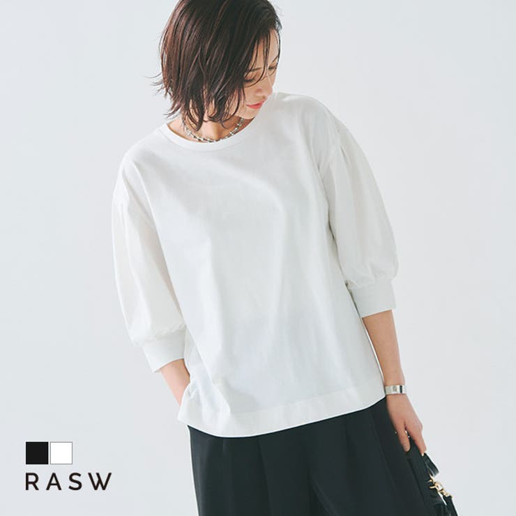 モードな雰囲気溢れるボクシーシルエット'[RASW]バイオシルケット袖切り替えTシャツ' 肌当たり滑らかな風合いのカットソー素材。 「消臭・抗菌、UVカット、接触冷感加工」が施された生地を採用し、夏に向けて快適に過ごせる一枚です。 袖に施された切り替えデザインがアクセントとなったシンプルなTシャツです。 ゆったりとしたボクシーなシルエットがモードな雰囲気を演出します。 アウトスタイルがおしゃれに決まるコンパクトな丈感も魅力です。 さらに、サイドスリットが程良い抜け感をプラスしています。 ※商品画像は着用イメージです。 光や角度により、実物と色味が異なる場合がございます。 また表示のサイズ感も実物とは若干異なる場合もございますので、予めご了承ください。 【お買い物を楽しむための方法】 **商品のお気に入り登録** カートボタン横のハートをクリック! 気になるアイテムがお得になると通知が届きます。 チャンスをのがしません♪ **ブランドのお気に入り登録** ブランドトップページの「お気に入りに追加」をクリック!新商品の情報を受け取ることができます。 【ブランド】 RASW(ラス)【スペック】■サイズM/L■実寸(約cm)【身丈/裄丈/バスト/袖口幅/脇口幅/裾幅】M:56/36.5/52/19/21/56L:58/37.5/54/19/21/58※実寸(平置きした状態でメジャー計測)の為、タグ表記のサイズとは異なります。 ■素材綿100%[フライス部分]綿98%/ポリウレタン2%■洗濯表示液温は30℃を限度とし、洗濯機で非常に弱い洗濯処理ができる塩素系及び酸素系漂白剤の使用禁止タンブル乾燥禁止日陰のつり干しがよい底面温度150℃を限度としてアイロン仕上げができる(あて布使用)石油系溶剤による弱いドライクリーニングができる非常に弱い操作によるウェットクリーニングができる■備考透け感(淡色):あり透け感(濃色):なし伸縮性:あり裏地:なしポケット:なしファスナー:なしオフホワイトに透け感が生じます。 ■ご注意・生地のカッティングにより画像と異なる場合がございます。 同商品、同色におきましても色(染料)やロットによって伸縮性・伸び率、裁断上ずれなどが生じてしまう現象があります。 また、プリント加工の際に、インク飛びが目立ってしまう場合がございますが、手法上致し方ない現象となりますので、なにとぞご了承くださいませ。 ・同生産時期でも、色、サイズ、デザイン、素材の質感が多少異なる場合がございます。 サイズ詳細などの測り方はスタッフ間で統一、徹底はしておりますが、若干の誤差(約2〜3cm誤差)がある場合がございます。 また、ニット製品は生産の過程上「生地を織る際の糸の継ぎ目」繊維の「混紡」、プレス加工、製品洗い加工によって形やサイズ(5cm前後)に誤差が生じる場合がございますが品質上の問題はございません。 返品・交換について購入後の交換は受け付けておりません。 予めご了承ください。 返品を希望される場合は購入履歴一覧の「ショップへの問い合わせ」よりお問い合わせください。 =========================複数配送先指定について1件の注文に対して、異なる住所への配送は対応出来かねます。 恐れ入りますが、異なる住所へ配送をご希望の場合、配送先毎に分けて注文いただきますようお願い申し上げます。 【トップスWOMEN】ブラック オフホワイト チャコールブラウン M L 【20%OFF!2/5(木)限定】Pierrot [RASW]バイオシルケット袖切り替えTシャツ ☆ Tシャツ 消臭・抗菌 UVカット 接触冷感加工 綿100 コットン100 レディース ラス RASW 【Pierrot】 ピエロ 夏服 3,599 ~