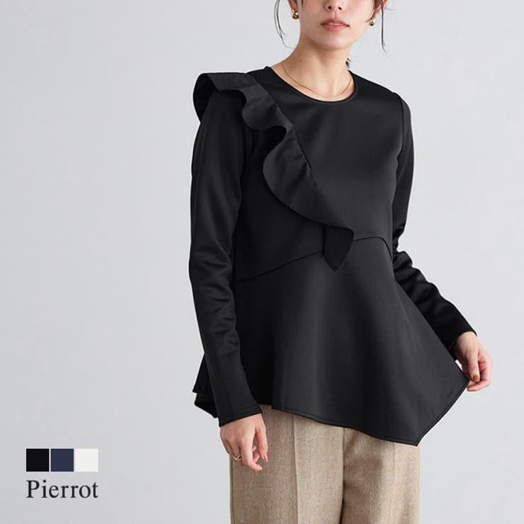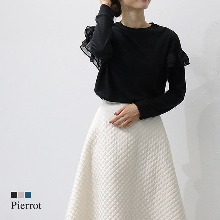 一枚で着映えスタイルが完成する“【イージーケア】デザインが選べるフリルドッキングカットソー”滑らかな表面感がカジュアルながらも上品な印象に。 程良くハリがあり綺麗なシルエットを保ち、シワになりにくくお手入れが簡単なところも魅力の一つです。 フリルの布帛部分は、さらっとした肌触りの良い綿混素材を採用しました。 ボトムにインしてもアウトでも合わせやすい着丈に仕上げ、シンプルなアイテムと合わせるだけでコーディネートが一気に華やかな印象に。 一枚での着用はもちろん、ジャンパースカートやジレのインナーとしてレイヤードスタイルが楽しめるところも魅力の一つ。 様々なシーンで幅広いスタイリングが叶います。 ※商品画像は着用イメージです。 光や角度により、実物と色味が異なる場合がございます。 また表示のサイズ感も実物とは若干異なる場合もございますので、予めご了承ください。 【お買い物を楽しむための方法】**商品のお気に入り登録**カートボタン横のハートをクリック!気になるアイテムがお得になると通知が届きます。 チャンスをのがしません♪**ブランドのお気に入り登録**ブランドトップページの「お気に入りに追加」をクリック!新商品の情報を受け取ることができます。 【ブランド】Pierrot(ピエロ)【スペック】■素材綿69%/ポリエステル31%[別布]ポリエステル86%/綿14%■洗濯表示液温は40℃を限度とし、ネットを使用し洗濯機で弱い洗濯処理ができる塩素系及び酸素系漂白剤の使用禁止タンブル乾燥禁止日陰のつり干しがよい底面温度110℃を限度としてアイロン仕上げができる(あて布使用)ドライクリーニング禁止■備考透け感(淡色):あり透け感(濃色):なし伸縮性:あり裏地:なしポケット:なしファスナー:なしオフホワイトに透け感が生じます。 ※実寸(平置きした状態でメジャー計測)の為、タグ表記のサイズとは異なります。 ■ご注意・生地のカッティングにより画像と異なる場合がございます。 同商品、同色におきましても色(染料)やロットによって伸縮性・伸び率、裁断上ずれなどが生じてしまう現象があります。 また、プリント加工の際に、インク飛びが目立ってしまう場合がございますが、手法上致し方ない現象となりますので、なにとぞご了承くださいませ。 ・同生産時期でも、色、サイズ、デザイン、素材の質感が多少異なる場合がございます。 サイズ詳細などの測り方はスタッフ間で統一、徹底はしておりますが、若干の誤差(約2〜3cm誤差)がある場合がございます。 また、ニット製品は生産の過程上「生地を織る際の糸の継ぎ目」繊維の「混紡」、プレス加工、製品洗い加工によって形やサイズ(5cm前後)に誤差が生じる場合がございますが品質上の問題はございません。 返品・交換について購入後の交換は受け付けておりません。 予めご了承ください。 返品を希望される場合は購入履歴一覧の「ショップへの問い合わせ」よりお問い合わせください。 =========================複数配送先指定について1件の注文に対して、異なる住所への配送は対応出来かねます。 恐れ入りますが、異なる住所へ配送をご希望の場合、配送先毎に分けて注文いただきますようお願い申し上げます。 【トップスWOMEN】ブラック ネイビー オフホワイト 袖フリル/M 袖フリル/L ラッフルフリル/M ラッフルフリル/L 肩フリル/M 肩フリル/L 【20%OFF!2/5(木)限定】Pierrot 【イージーケア】デザインが選べるフリルドッキングカットソー ☆ カットソー フリル 選べるデザイン イージーケア お手入れ簡単 着映え カジュアル 上品 袖フリル ラッフルフリル 肩フリ 2,796 ~