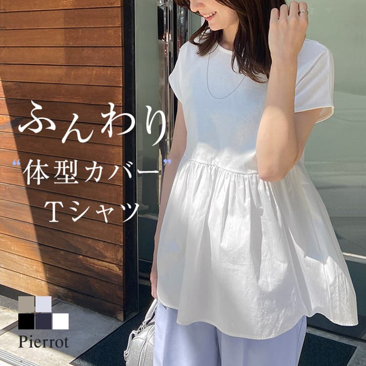 フェミニンで女性らしさ漂う“ドッキングヘムフレンチTシャツ”滑らかな表面感がカジュアルながらも上品な印象に。 裾の布帛部分は、綿混素材で程よくハリがあり、綺麗なシルエットをキープしてくれます。 ウエストにギャザーを施し、ふんわりとしたシルエットが女性らしく、一枚で着映え感を演出。 ウエスト周りの体型カバーになるところも嬉しいポイントです。 身頃はふんわりとしたシルエットなので肩はフレンチスリーブで袖もすっきりとしたサイズ感に仕上げました。 ※商品画像は着用イメージです。 光や角度により、実物と色味が異なる場合がございます。 また表示のサイズ感も実物とは若干異なる場合もございますので、予めご了承ください。 【お買い物を楽しむための方法】**商品のお気に入り登録**カートボタン横のハートをクリック!気になるアイテムがお得になると通知が届きます。 チャンスをのがしません♪**ブランドのお気に入り登録**ブランドトップページの「お気に入りに追加」をクリック!新商品の情報を受け取ることができます。 【ブランド】Pierrot(ピエロ)【スペック】■サイズ M/L■実寸(約cm)【身丈/裄丈/バスト/袖口幅】M:68/33/48/18L:70/34/50/19※実寸(平置きした状態でメジャー計測)の為、タグ表記のサイズとは異なります。 ■素材綿100%[別布]綿100%■洗濯表示液温は30℃を限度とし、ネットを使用し洗濯機で弱い洗濯処理ができる塩素系及び酸素系漂白剤の使用禁止タンブル乾燥禁止日陰のつり干しがよい底面温度150℃を限度としてアイロン仕上げができる石油系溶剤によるドライクリーニングができる■備考透け感(淡色):あり透け感(濃色):なし伸縮性:身頃のみあり裏地:なしポケット:なしファスナー:なし生地の特性上少し毛羽たちが生じます。 オフホワイトに透け感が生じます。 ■ご注意・生地のカッティングにより画像と異なる場合がございます。 同商品、同色におきましても色(染料)やロットによって伸縮性・伸び率、裁断上ずれなどが生じてしまう現象があります。 また、プリント加工の際に、インク飛びが目立ってしまう場合がございますが、手法上致し方ない現象となりますので、なにとぞご了承くださいませ。 ・同生産時期でも、色、サイズ、デザイン、素材の質感が多少異なる場合がございます。 サイズ詳細などの測り方はスタッフ間で統一、徹底はしておりますが、若干の誤差(約2〜3cm誤差)がある場合がございます。 また、ニット製品は生産の過程上「生地を織る際の糸の継ぎ目」繊維の「混紡」、プレス加工、製品洗い加工によって形やサイズ(5cm前後)に誤差が生じる場合がございますが品質上の問題はございません。 返品・交換について購入後の交換は受け付けておりません。 予めご了承ください。 返品を希望される場合は購入履歴一覧の「ショップへの問い合わせ」よりお問い合わせください。 =========================複数配送先指定について1件の注文に対して、異なる住所への配送は対応出来かねます。 恐れ入りますが、異なる住所へ配送をご希望の場合、配送先毎に分けて注文いただきますようお願い申し上げます。 【トップスWOMEN】ブラック ネイビー オフホワイト モカグレー アイスブルー M L 【20%OFF!2/5(木)限定】Pierrot ドッキングヘムフレンチTシャツ ☆ Tシャツ フレンチ袖 ドッキングヘム フェミニン カジュアル 上品 ギャザー 体型カバー 着映え ピエロ トップス 2,116 ~