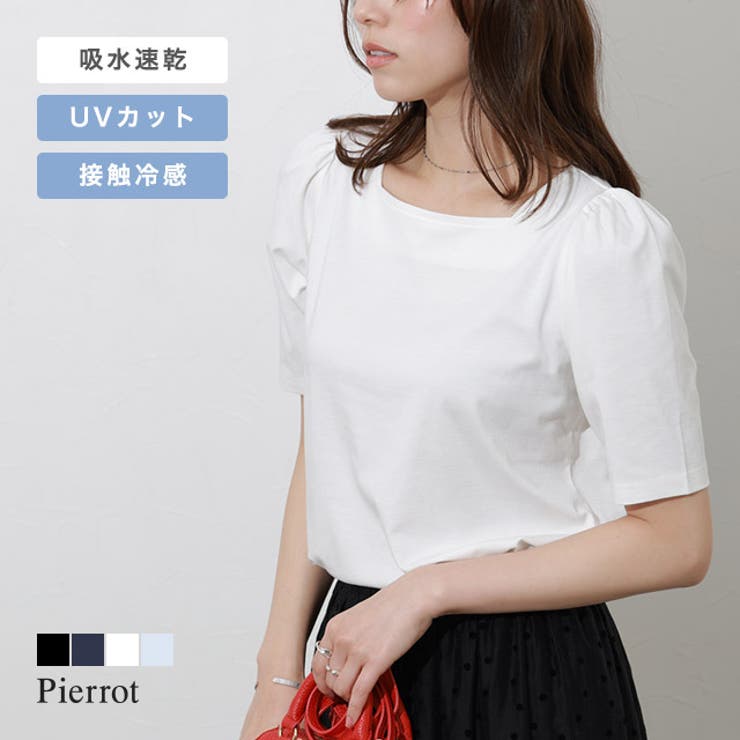 大人フェミニンを演出する“接触冷感スクエアネックパフスリーブTシャツ”レーヨン混で滑らかな肌触りのカットソー素材。 ややツヤのある表面感が、カットソーながらも上品な印象を漂わせます。 暑い季節に嬉しい、接触冷感機能付きで快適な着心地です◎UVカット効果もあり、お洒落を楽しみながら機能性も兼ね備えた優秀Tシャツです肩にギャザーを寄せたパフスリーブがフェミニンな一枚。 袖口に向かって細くなっているので、パフでも甘すぎず大人な印象で着られます◎デコルテが見えるスクエアネックが女性らしさを演出し、程良い抜け感をプラス。 ボトムスを選ばず着回しやすいアイテムです。 ※商品画像は着用イメージです。 光や角度により、実物と色味が異なる場合がございます。 また表示のサイズ感も実物とは若干異なる場合もございますので、予めご了承ください。 【お買い物を楽しむための方法】**商品のお気に入り登録**カートボタン横のハートをクリック!気になるアイテムがお得になると通知が届きます。 チャンスをのがしません♪**ブランドのお気に入り登録**ブランドトップページの「お気に入りに追加」をクリック!新商品の情報を受け取ることができます。 【ブランド】Pierrot(ピエロ)【スペック】■サイズ M/L■実寸(約cm)【身丈/肩幅/バスト/袖丈/袖口幅/脇口幅/裾幅】M:57.5/31/47.5/30/13/20.5/52L:59.5/33/49.5/30/13/21.5/54※実寸(平置きした状態でメジャー計測)の為、タグ表記のサイズとは異なります。 ■素材レーヨン66%/ナイロン28%/ポリウレタン6%■洗濯表示液温は40℃を限度とし、ネットを使用し洗濯機で弱い洗濯処理ができる塩素系及び酸素系漂白剤の使用禁止タンブル乾燥禁止日陰のつり干しがよい底面温度110℃を限度としてアイロン仕上げができる(あて布使用)ドライクリーニング禁止■備考透け感(淡色):あり透け感(濃色):なし伸縮性:あり裏地:なしポケット:なしファスナー:なし生地の特性上少し毛羽たちが生じます。 オフホワイトに透け感が生じます。 ■ご注意・生地のカッティングにより画像と異なる場合がございます。 同商品、同色におきましても色(染料)やロットによって伸縮性・伸び率、裁断上ずれなどが生じてしまう現象があります。 また、プリント加工の際に、インク飛びが目立ってしまう場合がございますが、手法上致し方ない現象となりますので、なにとぞご了承くださいませ。 ・同生産時期でも、色、サイズ、デザイン、素材の質感が多少異なる場合がございます。 サイズ詳細などの測り方はスタッフ間で統一、徹底はしておりますが、若干の誤差(約2〜3cm誤差)がある場合がございます。 また、ニット製品は生産の過程上「生地を織る際の糸の継ぎ目」繊維の「混紡」、プレス加工、製品洗い加工によって形やサイズ(5cm前後)に誤差が生じる場合がございますが品質上の問題はございません。 返品・交換について購入後の交換は受け付けておりません。 予めご了承ください。 返品を希望される場合は購入履歴一覧の「ショップへの問い合わせ」よりお問い合わせください。 =========================複数配送先指定について1件の注文に対して、異なる住所への配送は対応出来かねます。 恐れ入りますが、異なる住所へ配送をご希望の場合、配送先毎に分けて注文いただきますようお願い申し上げます。 【トップスWOMEN】ブラック ネイビー オフホワイト ライトブルー M L 【20%OFF!2/5(木)限定】Pierrot 接触冷感スクエアネックパフスリーブTシャツ ☆ Tシャツ 接触冷感 吸水速乾 スクエアネック UVカット パフ袖 カットソー 上品 ギャザー フェミニン レーヨン混 夏 夏服 オフィス 2,691 ~