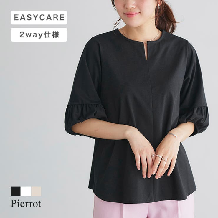2wayで着用できるフェミニントップス“【イージーケア】2wayランタンスリーブカットソー”滑らかな表面感がカジュアルながらも上品な印象を与えます。 程良くハリがあり綺麗なシルエットを保ち、シワになりにくくお手入れが簡単なところも魅力の一つです。 開き過ぎないネックラインが旬な印象に。 前後2wayで着回しが可能です。 程よくゆとりを持たせたサイズ感で、体のラインを拾わないところも嬉しいポイントです。 ※商品画像は着用イメージです。 光や角度により、実物と色味が異なる場合がございます。 また表示のサイズ感も実物とは若干異なる場合もございますので、予めご了承ください。 【お買い物を楽しむための方法】**商品のお気に入り登録**カートボタン横のハートをクリック!気になるアイテムがお得になると通知が届きます。 チャンスをのがしません♪**ブランドのお気に入り登録**ブランドトップページの「お気に入りに追加」をクリック!新商品の情報を受け取ることができます。 【ブランド】Pierrot(ピエロ)【スペック】■サイズ M/L■実寸(約cm)【身丈/肩幅/バスト/袖丈/袖口幅/脇口幅/裾幅】M:64/34/50/35.5/12.5/20/61.5L:66/36/52/35.5/12.5/21/63.5※実寸(平置きした状態でメジャー計測)の為、タグ表記のサイズとは異なります。 ■素材綿69%/ポリエステル31%■洗濯表示液温は40℃を限度とし、ネットを使用し洗濯機で弱い洗濯処理ができる塩素系及び酸素系漂白剤の使用禁止タンブル乾燥禁止日陰のつり干しがよい底面温度110℃を限度としてアイロン仕上げができる(あて布使用)ドライクリーニング禁止■備考透け感(淡色):あり透け感(濃色):なし伸縮性:あり裏地:なしポケット:なしファスナー:なし生地の特性上少し毛羽たちが生じます。 オフホワイトに透け感が生じます。 ■ご注意・生地のカッティングにより画像と異なる場合がございます。 同商品、同色におきましても色(染料)やロットによって伸縮性・伸び率、裁断上ずれなどが生じてしまう現象があります。 また、プリント加工の際に、インク飛びが目立ってしまう場合がございますが、手法上致し方ない現象となりますので、なにとぞご了承くださいませ。 ・同生産時期でも、色、サイズ、デザイン、素材の質感が多少異なる場合がございます。 サイズ詳細などの測り方はスタッフ間で統一、徹底はしておりますが、若干の誤差(約2〜3cm誤差)がある場合がございます。 また、ニット製品は生産の過程上「生地を織る際の糸の継ぎ目」繊維の「混紡」、プレス加工、製品洗い加工によって形やサイズ(5cm前後)に誤差が生じる場合がございますが品質上の問題はございません。 返品・交換について購入後の交換は受け付けておりません。 予めご了承ください。 返品を希望される場合は購入履歴一覧の「ショップへの問い合わせ」よりお問い合わせください。 =========================複数配送先指定について1件の注文に対して、異なる住所への配送は対応出来かねます。 恐れ入りますが、異なる住所へ配送をご希望の場合、配送先毎に分けて注文いただきますようお願い申し上げます。 【トップスWOMEN】ブラック オフホワイト グレージュ M L 【20%OFF!2/5(木)限定】Pierrot 【イージーケア】2wayランタンスリーブカットソー ☆ カットソー ランタンスリーブ 2way イージーケア 上品 カジュアル フェミニン お手入れ簡単 体型カバー ピエロ トップス 2,626 ~