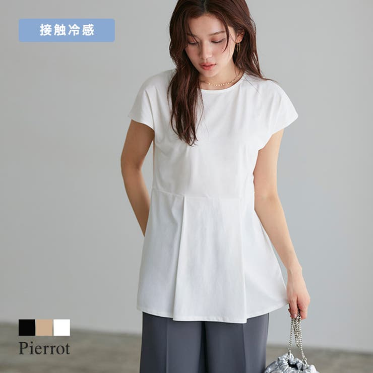 快適な着心地と体型カバーを叶える“ひんやりシルキーフレンチスリーブチュニックカットソー”ややツヤ感のある表面がカットソーなのにきれいめな印象をプラスし、暑い季節に嬉しい接触冷感機能付きで快適な着心地です◎ウエストにタックを施し、立体的なシルエットに仕上げ、体型カバーしつつ大人な印象に導きます。 二の腕周りもすっきりと見せてくれるフレンチスリーブで着やすい一枚に仕上げました。 ※商品画像は着用イメージです。 光や角度により、実物と色味が異なる場合がございます。 また表示のサイズ感も実物とは若干異なる場合もございますので、予めご了承ください。 【お買い物を楽しむための方法】**商品のお気に入り登録**カートボタン横のハートをクリック!気になるアイテムがお得になると通知が届きます。 チャンスをのがしません♪**ブランドのお気に入り登録**ブランドトップページの「お気に入りに追加」をクリック!新商品の情報を受け取ることができます。 【ブランド】Pierrot(ピエロ)【スペック】■サイズ M/L■実寸(約cm)【身丈/裄丈/バスト/袖口幅/裾幅】M:70/32/50/19.5/68L:71/33/52/20/70※実寸(平置きした状態でメジャー計測)の為、タグ表記のサイズとは異なります。 ■素材綿70%/ポリエステル30%■洗濯表示液温は40℃を限度とし、ネットを使用し洗濯機で弱い洗濯処理ができる塩素系及び酸素系漂白剤の使用禁止タンブル乾燥禁止日陰のつり干しがよい底面温度150℃を限度としてアイロン仕上げができる(あて布使用)石油系溶剤による弱いドライクリーニングができる弱い操作によるウェットクリーニングができる■備考透け感(淡色):あり透け感(濃色):なし伸縮性:あり裏地:なしポケット:なしファスナー:なし生地の特性上少し毛羽たちが生じます。 オフホワイトに透け感が生じます。 ■ご注意・生地のカッティングにより画像と異なる場合がございます。 同商品、同色におきましても色(染料)やロットによって伸縮性・伸び率、裁断上ずれなどが生じてしまう現象があります。 また、プリント加工の際に、インク飛びが目立ってしまう場合がございますが、手法上致し方ない現象となりますので、なにとぞご了承くださいませ。 ・同生産時期でも、色、サイズ、デザイン、素材の質感が多少異なる場合がございます。 サイズ詳細などの測り方はスタッフ間で統一、徹底はしておりますが、若干の誤差(約2〜3cm誤差)がある場合がございます。 また、ニット製品は生産の過程上「生地を織る際の糸の継ぎ目」繊維の「混紡」、プレス加工、製品洗い加工によって形やサイズ(5cm前後)に誤差が生じる場合がございますが品質上の問題はございません。 返品・交換について購入後の交換は受け付けておりません。 予めご了承ください。 返品を希望される場合は購入履歴一覧の「ショップへの問い合わせ」よりお問い合わせください。 =========================複数配送先指定について1件の注文に対して、異なる住所への配送は対応出来かねます。 恐れ入りますが、異なる住所へ配送をご希望の場合、配送先毎に分けて注文いただきますようお願い申し上げます。 【トップスWOMEN】ブラック ライトベージュ オフホワイト M L 【20%OFF!2/5(木)限定】Pierrot ひんやりシルキーフレンチスリーブチュニックカットソー ☆ カットソー フレンチスリーブ チュニック 接触冷感 体型カバー ツヤ感 きれいめ ウエストタック 立体感 ピエロ トップス 2,542 ~