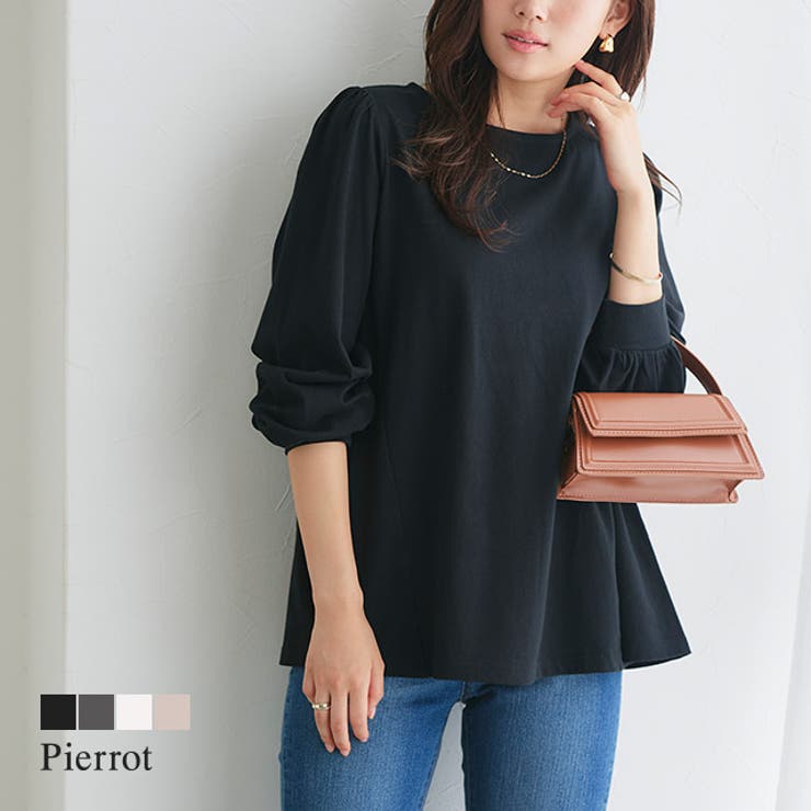 シンプルながらも女性らしいシルエット“パフフレアコットンロングスリーブTシャツ” 綿100%素材を使用しているため、素肌に優しくストレスフリーな肌触りが魅力。 吸水性が高く、通気性が良いので快適な着心地をキープします。 サイドを切り替えてフレアを作ることで、フェミニンなシルエットに仕上げました。 袖にもボリュームを持たせることで、全体バランスを整えた一枚。 ※商品画像は着用イメージです。 光や角度により、実物と色味が異なる場合がございます。 また表示のサイズ感も実物とは若干異なる場合もございますので、予めご了承ください。 【お買い物を楽しむための方法】 **商品のお気に入り登録** カートボタン横のハートをクリック! 気になるアイテムがお得になると通知が届きます。 チャンスをのがしません♪ **ブランドのお気に入り登録** ブランドトップページの「お気に入りに追加」をクリック!新商品の情報を受け取ることができます。 【ブランド】 Pierrot(ピエロ)【スペック】■サイズPM:身丈62cm|肩幅35cm|バスト49cm|袖丈60.5cm|袖口幅10cm|脇口幅20.5cm|裾幅76cm|M:身丈67cm|肩幅35cm|バスト49cm|袖丈60.5cm|袖口幅10cm|脇口幅20.5cm|裾幅76cm|L:身丈69cm|肩幅37cm|バスト51cm|袖丈60.5cm|袖口幅10cm|脇口幅21.5cm|裾幅78cm|■素材綿100%■洗濯表示液温は40℃を限度とし、ネットを使用し洗濯機で弱い洗濯処理ができる塩素系及び酸素系漂白剤の使用禁止タンブル乾燥禁止日陰のつり干しがよい底面温度200℃を限度としてアイロン仕上げができる(あて布使用)ドライクリーニング禁止■備考透け感(淡色):あり透け感(濃色):なし伸縮性:あり裏地:なしポケット:なしファスナー:なし生地の特性上少し毛羽たちが生じます。 オフホワイトに透け感が生じます。 ※実寸(平置きした状態でメジャー計測)の為、タグ表記のサイズとは異なります。 ■ご注意・生地のカッティングにより画像と異なる場合がございます。 同商品、同色におきましても色(染料)やロットによって伸縮性・伸び率、裁断上ずれなどが生じてしまう現象があります。 また、プリント加工の際に、インク飛びが目立ってしまう場合がございますが、手法上致し方ない現象となりますので、なにとぞご了承くださいませ。 ・同生産時期でも、色、サイズ、デザイン、素材の質感が多少異なる場合がございます。 サイズ詳細などの測り方はスタッフ間で統一、徹底はしておりますが、若干の誤差(約2〜3cm誤差)がある場合がございます。 また、ニット製品は生産の過程上「生地を織る際の糸の継ぎ目」繊維の「混紡」、プレス加工、製品洗い加工によって形やサイズ(5cm前後)に誤差が生じる場合がございますが品質上の問題はございません。 返品・交換について購入後の交換は受け付けておりません。 予めご了承ください。 返品を希望される場合は購入履歴一覧の「ショップへの問い合わせ」よりお問い合わせください。 =========================複数配送先指定について1件の注文に対して、異なる住所への配送は対応出来かねます。 恐れ入りますが、異なる住所へ配送をご希望の場合、配送先毎に分けて注文いただきますようお願い申し上げます。 【トップスWOMEN】ブラック チャコール オフホワイト グレージュ PM M L 【20%OFF!2/5(木)限定】Pierrot パフフレアコットンロングスリーブTシャツ ☆ Tシャツ 綿100% パフスリーブ カットソー フェミニン サイド切り替え フレア ピエロ トップス 2,371 ~