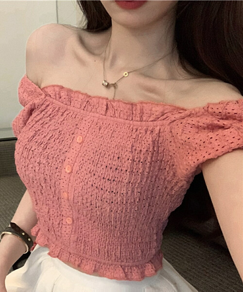 [型番:jtf9199a]フリルやパフスリーブがかわいい!体にフィットするトップスでショート丈なので足元はシンプルなパンツやデニムに合わせるだけで “いい女”感が増しちゃいます。 スリーブを肩まで下げてオフショルダー風にも着ていただけます。 <br>原産国:中国<br>■カラー:ブラック、ホワイト、ピンクFREE:身幅27 総丈36 ゆき31SMALL:身幅33 総丈38.5 ゆき32.5MEDIUM:身幅34 総丈39 ゆき33LARGE:身幅35 総丈39.5 ゆき34※( )で表記されている数字はヌードサイズです。 ヌードサイズとは衣服を身につけない身体のサイズです。 お客様ご自身の身体サイズと比較してお選びください。 ■素材: 素材:ポリエステル100% ■お手入: >>商品のお取り扱い方法 ■原産国: 中国パフスリーブトップス 韓国ファッション/ジャスミングランディフローラム(Jasmine Grandiflorum)ブラックホワイトピンク画面上と実物では、多少色具合が異なって見える場合がございます。