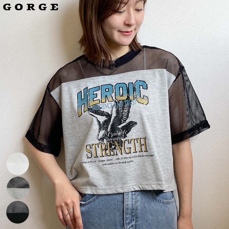 【10%OFFクーポン!2/10(火)1:59まで】GORGE メッシュ切替プリントTシャツ トップス 1,210 ~