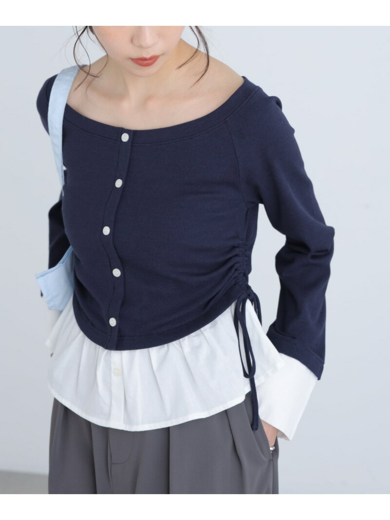 FREE'S MART(フリーズ マート)布帛ドッキングサイドシャーリングカットソー今季トレンドのドッキングデザインを取り入れた、カットソーと布帛の異素材トップス。 身頃は細ピッチリブで、薄手ながらテンションのある生地を使用。 フロントは前立て風ディテールがレイヤード感を演出してくれます。 裾はキャザーフレアにし、脇をドロストするとかわいいシルエットに。 ラグラン切替と襟ぐり広めなので、オフショルダーとしても着られます。 袖口は本開き仕様のシャツボタン付き。 キレイめな生地感なのでスラックスと合わせた大人っぽい着こなしや、カジュアルパンツやミニスカートとのトレンドスタイルもおすすめです。 ※モデルの着用画像の場合、光の当たり具合により、実際の色味と異なって見えることがございます。 色味は、商品単体の画像をご参照ください。 型番:131-6160218-120-41 RD2093【採寸】FR:バスト76cm、袖丈61.5cm、着丈52cm商品のサイズについて【商品詳細】中国製素材:レーヨン46%,コットン44%,ポリウレタン10%(別布部分)コットン57%,ポリエステル43%サイズ:FR洗濯機可、ドライクリーニング※画面上と実物では多少色具合が異なって見える場合もございます。 ご了承ください。 商品のカラーについてFREE'S MART(フリーズ マート)布帛ドッキングサイドシャーリングカットソー今季トレンドのドッキングデザインを取り入れた、カットソーと布帛の異素材トップス。 身頃は細ピッチリブで、薄手ながらテンションのある生地を使用。 フロントは前立て風ディテールがレイヤード感を演出してくれます。 裾はキャザーフレアにし、脇をドロストするとかわいいシルエットに。 ラグラン切替と襟ぐり広めなので、オフショルダーとしても着られます。 袖口は本開き仕様のシャツボタン付き。 キレイめな生地感なのでスラックスと合わせた大人っぽい着こなしや、カジュアルパンツやミニスカートとのトレンドスタイルもおすすめです。 ※モデルの着用画像の場合、光の当たり具合により、実際の色味と異なって見えることがございます。 色味は、商品単体の画像をご参照ください。 型番:131-6160218-120-41 RD2093【採寸】FR:バスト76cm、袖丈61.5cm、着丈52cm商品のサイズについて【商品詳細】中国製素材:レーヨン46%,コットン44%,ポリウレタン10%(別布部分)コットン57%,ポリエステル43%サイズ:FR洗濯機可、ドライクリーニング※画面上と実物では多少色具合が異なって見える場合もございます。 ご了承ください。 商品のカラーについてこの商品は先行予約商品のため返品・交換対象外です詳細はこちら >> FREE'S MART 布帛ドッキングサイドシャーリングカットソー フリーズ マート トップス カットソー・Tシャツ ネイビー ホワイト ブルー グレー【送料無料】 6,589 ~