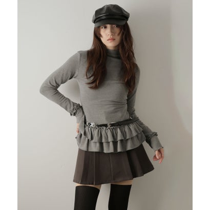 1枚でも、レイヤードでも映える裾フリルトップス。 ■デザイン裾にフリルをあしらったハイネックカットソー。 ややフィット感のあるシルエットで女性らしさを引き立てつつ、シンプルな中に華やぎをプラス。 1枚で着ても存在感があり、レイヤードインナーとして裾フリルを覗かせても洒落感アップ。 ハイネックが顔まわりをすっきり見せ、上品な印象を演出します。 ■素材- コットンポリ混素材で、柔らかく軽やか。 - 通気性があり、快適な着心地。 - デイリー使いに最適な耐久性。 ■スタイリング- デニムやスラックスと合わせて、シンプルに。 - ジャケットやカーディガンのインナーとして、裾フリルをちら見せ。 - スカートと合わせて、フェミニンなスタイルに。 - アクセサリーや小物で遊びを加えると、さらに洒落感アップ。 -----------透け感:なし伸縮性:ややあり裏地:なし------------------------------------------【スタッフが着用しました!】身長:158cm普段着用サイズ:S~Mサイズ今回着用サイズ:FREEサイズ■着用感ややフィット感があり、女性らしいラインを自然に演出。 ハイネックで首元がすっきりし、レイヤードにも最適。 裾フリルがアクセントになり、シンプルなボトムでも華やかに。 軽くて動きやすく、長時間の着用も快適です。 -------------------------------【お買い物をよりお楽しみいただく為に】▼お気に入り登録サイズ・カラーを指定して、♡マークをクリック![セール通知・ラスト1点の通知・完売アイテムの再入荷通知]を受け取ることができます。 ▼ブランドのお気に入り登録新商品や再入荷、タイムセールやクーポン等いち早くブランドのお得な情報を受け取ることができます。 -------------------------------※取り扱い上のご注意染色の特性上、発汗や摩擦により色落ちしたり他のものに色移りすることがありますのでご注意ください。 韓国ファッション オフィスカジュアルガーリー大人カジュアル韓国ファッション秋服冬服FREE : 【着丈】60cm / 【肩幅】35cm / 【胸囲】72cm / 【袖丈】61cm別カラーはこちら! グレー(ダークグレー) ブラウン ガーリードール Girly Doll 裾フリルハイネックカットソー (グレー) 4,270 ~