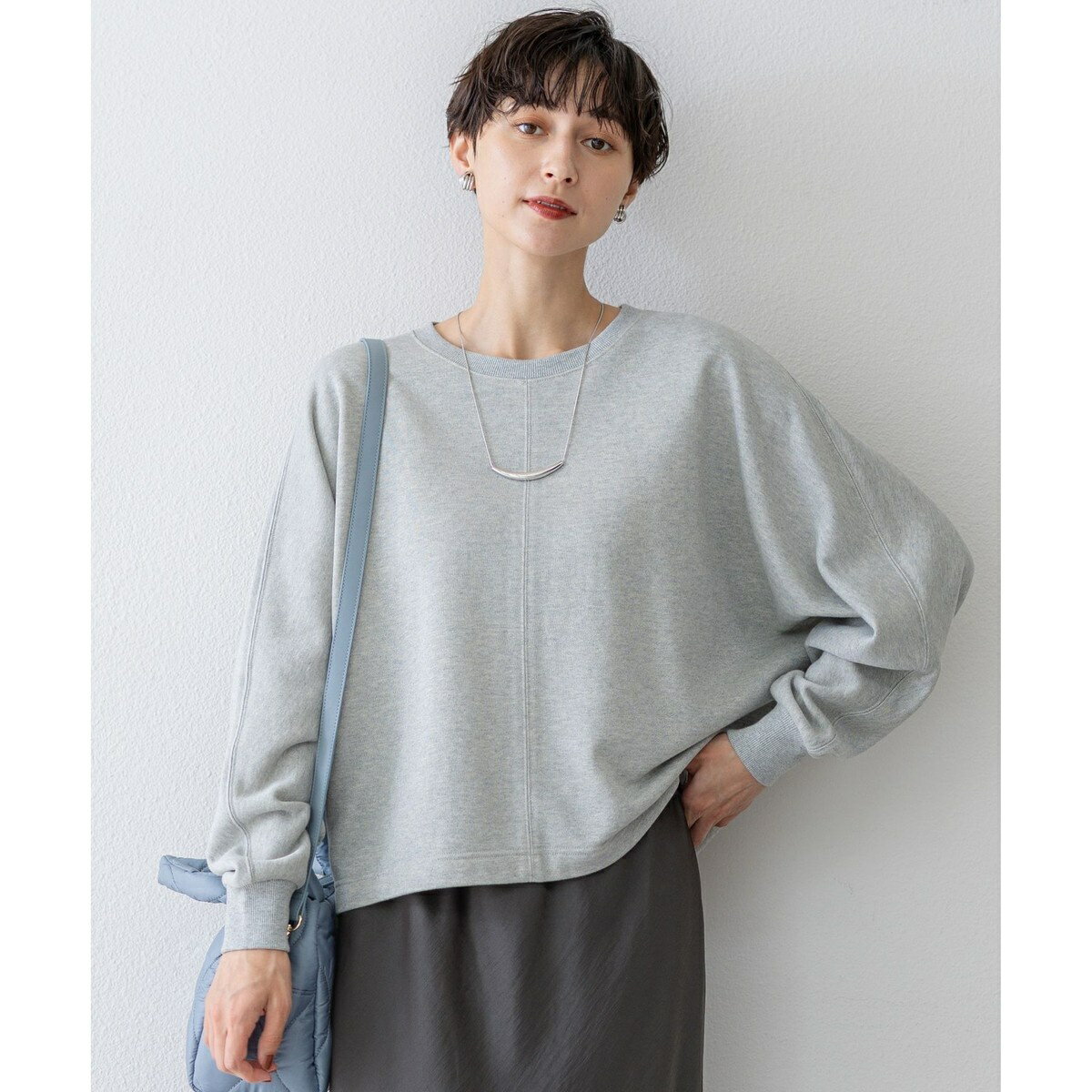 [型番:KKWOGA0331]2025 Autumn & Winterカジュアル感とラメの上品な煌めきがバランスの良い一枚■デザイン一枚でサマになる、ドルマンスリーブのスウェット。 袖下に分量がたまり重くなりがちなドルマンスリーブを、クロップド丈にすることで程よいボリューム感に調整しました。 サイドシルエットにニュアンスが出るよう後ろアームホールを長くし、どこから見ても美しいシルエットを演出します。 繊細なラメと上品なカラーが相まって、カジュアルになりすぎない大人のスウェットが完成しました。 きれいめパンツやフレアスカートと合わせて、上品なカジュアルスタイルをお楽しみいただけます。 カラーはニュアンス感のあるライトグレー(#003)と、さりげなく華やぐベージュ(#033)の2色展開です。 ■素材綿40/1、24Gのミニ裏毛素材を使用しており、一般的な裏毛に比べて薄手で軽さがあるのが特徴です。 また、表側はTOP糸(繊維を束の状態で染めるトップ染めの手法で作られた糸)とラメ糸を引き揃えで編み上げることで、繊細かつ均一で控えめなラメ感が魅力。 肌触りも良く、快適な着心地で、秋口から冬まで長くご愛用いただけます。 ※画像はサンプルを使用している為、実際にお届けする商品と仕様が異なる場合がございます。 ■カラー:ライトグレー系、ベージュ系38:総丈58.5 ゆき80.0※( )で表記されている数字はヌードサイズです。 ヌードサイズとは衣服を身につけない身体のサイズです。 お客様ご自身の身体サイズと比較してお選びください。 ■素材: [本体]綿:84%,ナイロン:11%,ポリエステル:5%[リブ部分]綿:65%,ナイロン:22%,ポリエステル:9%,ポリウレタン:4% ■お手入: 洗濯機、漂白不可、タンブル乾燥不可、自然乾燥、アイロン仕上げ可、ドライ、ウエットクリーニング可 >>商品のお取り扱い方法 ■原産国: 中国【洗える】シャイニーコットンテリー ドルマン スウェット/23区(23KU)ライトグレー系ベージュ系画面上と実物では、多少色具合が異なって見える場合がございます。