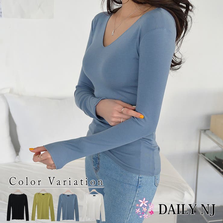 【10%OFFクーポン!2/10(火)1:59まで】DAILY NJ 新作 春夏 Tシャツ トップス Vネック スリム 伸縮性 大人可愛い 無地 ボディーフィット カジュアル 長袖 韓国ファッション at359 トップス 1,980 ~
