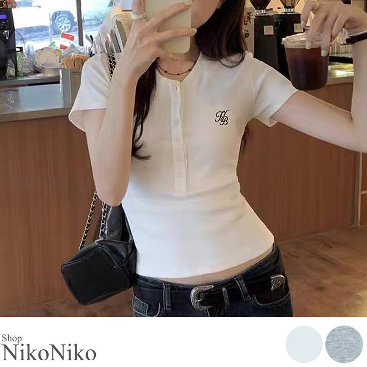 POINTシンプルなワンポイントロゴで使いやすいヘンリーネックトップスが入荷!程よく体に沿うようなシルエットで、細見え効果も抜群なスリムトップス◎ボタンを開けて肌見せを楽しむスタイリングも◎カラーは使いやすいグレー、ホワイトの2色。 タイトなシルエットなので、ボリュームのあるデニムパンツやガーリーなバルーンスカートなど様々なファッションジャンルで活躍します。 COLOR・ホワイト・グレー商品説明文:■モデル身長:163cm■サイズ:着丈45.5cm 肩幅31cm 身幅35.5cm 袖丈15cm 袖口14.5cm 裾幅35.5cm■伸縮性:あり■裏地:なし■生地の厚さ:普通■透け感:淡色若干■素材:本体:ポリエステル■原産国:中国■注意事項:★平置きでの採寸の為、若干の誤差が生じる可能性があります。 ★モニター画面により、画像の色味と多少異なる場合がございます。 ★入荷時期やカラーによりサイズ数値が若干異なる場合がございます。 予めご了承の上、ご検討をお願いいたします。 【Information】▼商品のお気に入り登録 (カートの右のハートをクリック)お気に入りアイテムのお知らせ、完売カラーの再入荷通知、在庫1点などの通知を受け取ることができます。 ▼ブランドのお気に入り登録(上部のブランド名をクリック)新商品や再入荷などの通知を受け取ることができます。 返品・交換について購入後の交換は受け付けておりません。 予めご了承ください。 返品を希望される場合は購入履歴一覧の「ショップへの問い合わせ」よりお問い合わせください。 =========================複数配送先指定について1件の注文に対して、異なる住所への配送は対応出来かねます。 恐れ入りますが、異なる住所へ配送をご希望の場合、配送先毎に分けて注文いただきますようお願い申し上げます。 【トップスWOMEN】グレー ホワイトグレー ホワイト 【10%OFFクーポン!2/10(火)1:59まで】ShopNikoNiko 冬新作 ロゴ刺繍 ヘンリーネック タイトトップス ma 韓国カジュアル 韓国ガーリー 春 夏 秋 トップス Tシャツ 半袖 フロントボタン 刺繍ロゴ ワンポイント レディース 4,068 ~