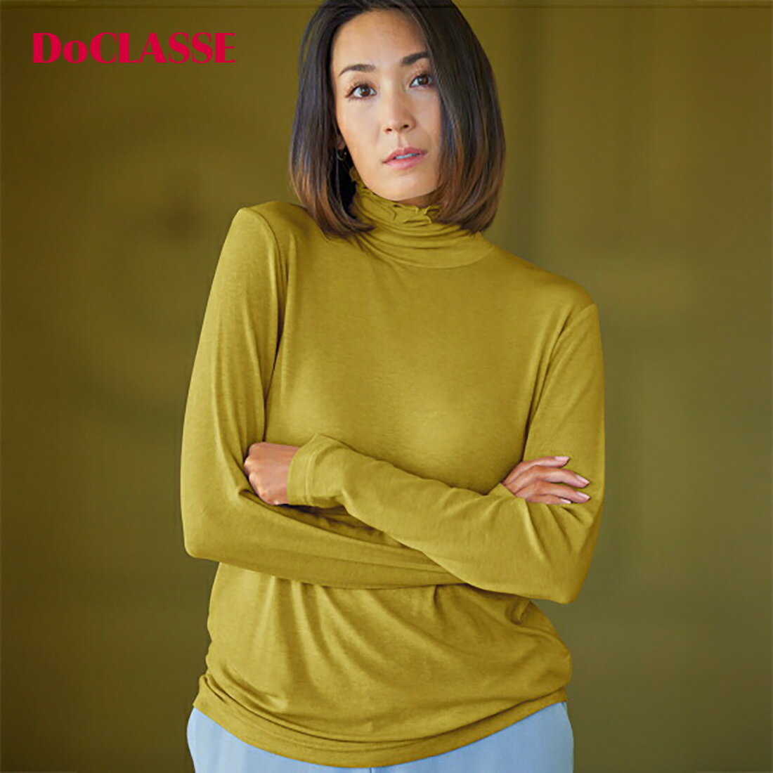 素材再生繊維(セルロース)77%・毛19%・ポリウレタン4%洗濯表示手洗い可サイズ詳細サイズ着丈バスト肩幅襟高袖丈AH(アームホール)S618433135736M628834135737L639235135739XL6497361357.541XXL64.510337.51357.543・色:ミッドナイトブルー / ソフトピンク / ピスタチオ・注意事項:モニターの発色具合により色合いが異なる場合がございます。 【関連キーワード】 DoCLASSE ドゥクラッセ 大人の服 30代 40代 50代 レディース メンズ きれいめ 大人カジュアル オフィスカジュアル 通勤 旅行 体型カバー 着痩せ ストレッチ 洗える 防シワ 速乾 接触冷感 UVカット 撥水 保温 裏起毛 軽量 セットアップ ワンピース シャツ ブラウス Tシャツ カットソー ニット セーター カーディガン パンツ スカート コート ダウン ブルゾン ジャケット ベスト バッグ ゴルフ マジカルサーモ Doヒートエアリーウール・メロウネックトップス透け感×華奢見えシルエット×キレイ色で、大人の重ね着をもっと綺麗に!エアリーウール・メロウハイネックミッドナイトブルーソフトピンクピスタチオコーデ自在のハイネックトップス。 ウール混でありながらほのかに透ける美しい質感、ニットやジャケットに重ねてもごろつかない繊細な着心地、そして衿もとをフリルのようにしあげたメロウネックの華やかさ。 大人を綺麗に魅せるトップスで、レイヤードスタイルを楽しんで。