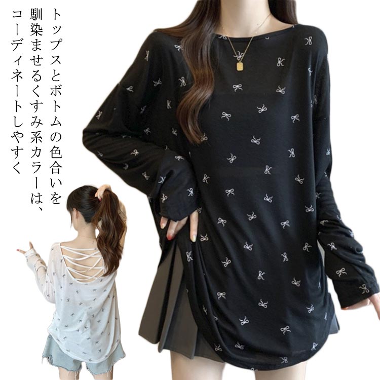 Tシャ 韓国風 オーバーサイズ tシャツ 長袖 カットソー ロング クルーネック カットソー トップス ロンT 長袖Tシャツ レディース 2,599 ~