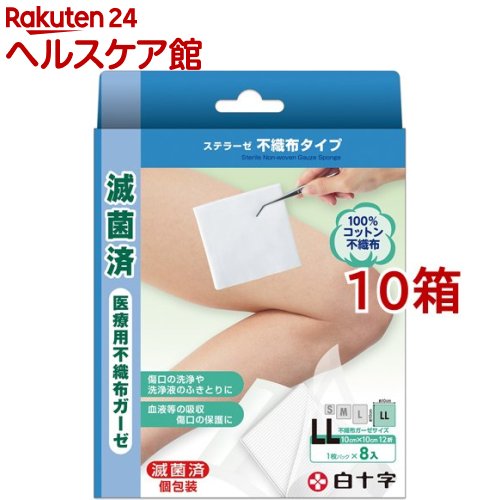 お店TOP>衛生医療>看護・医療用品>ガーゼ類>不織布ガーゼ>FCステラーゼ 不織布タイプ LLサイズ (8枚入*10箱セット)商品区分:一般医療機器(届出番号:13B2X00023000171)【FCステラーゼ 不織布タイプ LLサイズの商品詳細】●100%コットン素材の不織布ガーゼでやさしい肌ざわりです。 ●医療機器の滅菌済不織布ガーゼだから清潔で傷口にも。 ●1枚入の個包装だから持ち運びに便利です。 ●ガーゼの毛羽立ちが気になる方、ガーゼよりも吸水性の高いものを求める方にもおすすめです。 ●ガーゼサイズ:10cm*10cm 12折【効能 効果】★使用目的又は効果創傷又は外科切開部を処置するために用いる不織布から成る被覆・保護材をいう。 【使用方法】・本品を無菌的に滅菌袋より取り出し、そのまま直ちに、1回限り使用すること。 ・本品は再滅菌しないこと。 ・一度開封したものは、滅菌状態が保てないので、開封後は全量を消費すること。 【FCステラーゼ 不織布タイプ LLサイズの原材料】コットン100%【注意事項】★禁忌・禁止再使用禁止★使用上の注意1.併用医療機器ごくまれに電気メス等の使用により引火することがある。 2.使用方法繊維が患部に残らないように注意すること。 (不織布繊維が脱落することがあるため)体内に留置しないこと。 (使い捨て医療機器のため)★保管方法及び有効期間等1.保管方法直射日光及び火気を避け、湿気の少ない清潔な場所に保管すること。 2.有効期間本品の使用期限は包装に記載。 (自己認証(メーカーデータ)による)【原産国】中国【ブランド】ファミリーケア(FC)【発売元、製造元、輸入元又は販売元】白十字※説明文は単品の内容です。 リニューアルに伴い、パッケージ・内容等予告なく変更する場合がございます。 予めご了承ください。 ・単品JAN:4987603430037白十字171-8552 東京都豊島区高田3-23-120120-01-8910広告文責:楽天グループ株式会社電話:050-5577-5042[衛生用品/ブランド:ファミリーケア(FC)/] FCステラーゼ 不織布タイプ LLサイズ(8枚入*10箱セット)【ファミリーケア(FC)】[不織布ガーゼ滅菌ガーゼ個包装ガーゼ医療用ガーゼ] 2,659 ~
