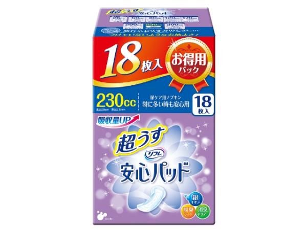 メーカー リブドゥコーポレーション 商品カテゴリ トイレ・排泄介助>軽失禁パッド 発送目安 1〜2週間以内に発送予定 お支払方法 銀行振込・クレジットカード 送料 送料無料 特記事項 その他 [ベビー/シルバー】介護用品]着けていないような心地よさの超うす安心パッド リブドゥコーポレーション リフレ 安心パッド お得用パック 230cc 18枚 2,464 ~