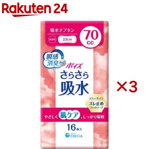お店TOP>日用品>生理用品>尿もれ用シート・パッド>尿もれ用シート・パッド全部>ポイズ さらさら吸水 吸水ナプキン 70cc (16枚入×3セット)【ポイズ さらさら吸水 吸水ナプキン 70ccの商品詳細】●ピタッとすっきりズレ止めフィットテープを新採用●キレイがつづくお肌快適抗菌シートで肌トラブルを軽減●素肌と同じ弱酸性●スピード吸収&モレブロック●ニオイをすぐに消臭&24時間抗菌●ムレにくい全面通気性●かわいい花柄エンボス●無香料●吸収量の目安:70ccパッドサイズ:長さ23cm【原産国】日本【ブランド】ポイズ【発売元、製造元、輸入元又は販売元】日本製紙クレシア※説明文は単品の内容です。 リニューアルに伴い、パッケージ・内容等予告なく変更する場合がございます。 予めご了承ください。 ・単品JAN:4901750884352日本製紙クレシア101-8215 東京都千代田区神田駿河台4-60120-870-357広告文責:楽天グループ株式会社電話:050-5577-5043[衛生用品/ブランド:ポイズ/] ポイズ さらさら吸水 吸水ナプキン 70cc(16枚入×3セット)【ポイズ】 1,254 ~