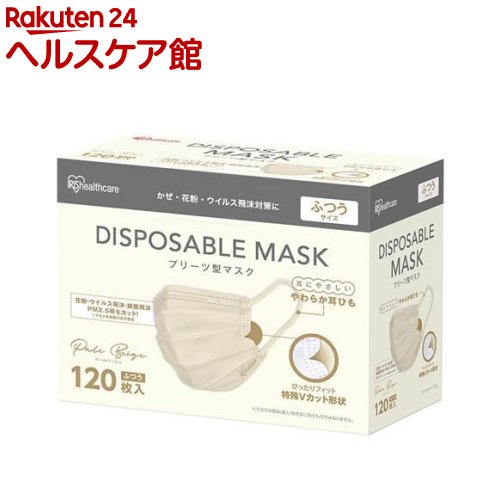 お店TOP>衛生医療>マスク>マスク 形状・素材別>プリーツマスク>アイリスオーヤマ プリーツマスク ペールベージュ (120枚入)【アイリスオーヤマ プリーツマスク ペールベージュの商品詳細】●花粉・ウイルス飛沫等を99%カットするフィルターを採用しています。 ●側面両端Vカット加工しているので、ほほとのすき間を低減し、長時間ぴったりフィットします。 ●耳にやさしいやわらか丸耳ひも採用で耳が痛くなりにくいです。 ●ダブルΩプリーツ加工で口元空間をキープするから会話が楽です。 【使用方法】(1)プリーツを伸ばし、マスクが立体になるように広げます。 (2)マスクを顔に当てて、ノーズフィッターを鼻の形に合わせます。 (3)マスクをおさえた状態で耳紐を掛けます。 【規格概要】ふつうサイズ:120枚×1箱セット商品サイズ(cm):幅約16.5×高さ約9主要材質本体・フィルター:ポリプロピレン耳ひも:ポリウレタン、ポリエステルノーズフィッター:ポリエチレン【発売元、製造元、輸入元又は販売元】アイリスプラザリニューアルに伴い、パッケージ・内容等予告なく変更する場合がございます。 予めご了承ください。 アイリスプラザ980-0021 宮城県仙台市青葉区中央2-1-703-6704-9391広告文責:楽天グループ株式会社電話:050-5577-5043[マスク] アイリスオーヤマ プリーツマスク ペールベージュ(120枚入) 1,273 ~