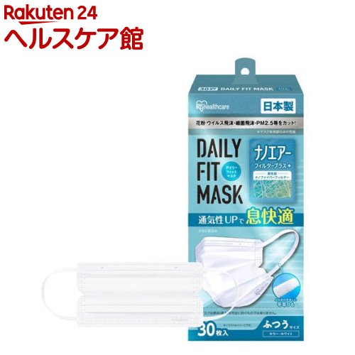 お店TOP>衛生医療>マスク>マスク全部>使い捨てマスク>デイリーフィットマスク ナノエアーフィルタープラス ふつうPN-NEX30L (30枚入×2セット)【デイリーフィットマスク ナノエアーフィルタープラス ふつうPN-NEX30Lの商品詳細】●マスクの性能の指標となる日本産業規格「JIS T 9001(一般用マスク)」に適合した、国産の不織布マスク。 ●特殊ナノファイバー加工の中間層が着用時の口元温度上昇を緩和し、蒸れによる不快感を軽減。 ●花粉、ウイルス飛沫、細菌飛沫、PM2.5等をカット。 (※マスク本体部のみの性能です。 )●ナノファイバー加工の中間層を採用し、通気性を保ちながらウイルス飛沫の侵入を防ぐ。 「プリーツ型マスク」●PN-NEX30:やわらかい幅広の耳ひも採用で、長時間装着しても耳が痛くなりにくい。 ●側面両端Vカット加工により、頬との隙間を低減し、長時間ぴったりフィット。 【規格概要】型番PN-NEX30:耳ゴム6mm(平タイプ)商品サイズ(cm)[PN-NEX30(耳ゴム6mm)]ふつうサイズ:幅約17.5×高さ約9素材本体・フィルター:ポリプロピレン、ポリフッ化ビニリデン耳ひも:ポリエステル、ポリウレタンノーズフィッター:ポリエチレン日本産業規格JIS T 9001(一般用マスク)規格適合番号G42107005【発売元、製造元、輸入元又は販売元】アイリスプラザ※説明文は単品の内容です。 リニューアルに伴い、パッケージ・内容等予告なく変更する場合がございます。 予めご了承ください。 ・単品JAN:4967576743471アイリスプラザ980-0021 宮城県仙台市青葉区中央2-1-703-6704-9391広告文責:楽天グループ株式会社電話:050-5577-5042[マスク] デイリーフィットマスク ナノエアーフィルタープラス ふつうPN-NEX30L(30枚入×2セット) 1,290 ~
