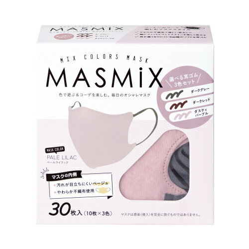 ※商品リニューアル等によりパッケージ及び容量は変更となる場合があります。 ご了承ください。 ツートーンカラーで楽しむマスクスタイル!こだわりの“角度”でマスクのズレ落ち軽減顔にフィットしフェイスラインを美しく見せる汚れが目立たない内側カラー耳が痛くなりにくい6mm幅のソフトな耳ゴム仕様 名称 マスク 内容量 30枚 使用方法・用法及び使用上の注意 ・本品は有毒なガスや粉塵を防ぐ効果はありませんので、そのような場所や目的では使用しないでください。 ・肌に以上のある場合や、異常が発生したときは使用を中止してください。 ・マスクの臭いで気分が悪くなった場合は、ただちに使用を中止してください。 ・このマスクは適切な着用により細菌飛まつなどの体内への侵入を減らしますが、感染による疾患のリスクを皆無にするものではありません。 ・本品は再使用できません。 保管および取扱い上の注意 ・直射日光・水濡れ・下記及び高温・多湿を避け、清潔な場所に保管してください。 ・乳幼児の手の届かない所に保管してください。 原材料 本体・フィルター部:ポリプロピレン、耳ゴム:ポリエステル・ポリウレタン 発売元、製造元、輸入元又は販売元、消費者相談窓口 川本産業株式会社大阪市中央区糸屋町2丁目4番1号電話:06-6943-8956 原産国 中国 商品区分 衛生用品 広告文責 株式会社レデイ薬局 089-909-3777薬剤師:池水 信也,, マスミックス マスク 耳紐アソート ペールライラック 30枚 1,600 ~