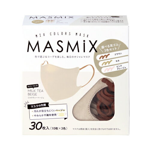 ※商品リニューアル等によりパッケージ及び容量は変更となる場合があります。 ご了承ください。 色で遊ぶ&コーデを楽しむ。 毎日のオシャレにMASMIX 名称 マスク 内容量 30枚 使用方法・用法及び使用上の注意 ・本品は有毒なガスや粉塵を防ぐ効果はありませんので、そのような場所や目的では使用しないでください。 ・肌に異常のある場合や、以上が発生したときは使用を中止してください。 ・マスクの臭いで気分が悪くなった場合は、ただちに使用を中止してください。 ・このマスクは適切な着用により、細菌飛まつなどの体内への侵入を減らしますが、感染による疾患のリスクを皆無にするものではありません。 ・本品は再使用できません。 保管および取扱い上の注意 ・直射日光・水漏れ・火気及び高温多湿を避け、清潔な場所に保管してください。 ・乳幼児の手の届かない所に保管してください。 原材料 本体・フィルター部:ポリプロピレン 耳ゴム:ポリエステル・ポリウレタン 発売元、製造元、輸入元又は販売元、消費者相談窓口 川本産業株式会社大阪市中央区糸屋町2丁目4番1号電話:06-6943-8956 原産国 中国 商品区分 衛生用品 広告文責 株式会社レデイ薬局 089-909-3777薬剤師:池水 信也,, MASMIX マスク サンドベージュ×ブラック 30枚 1,177 ~