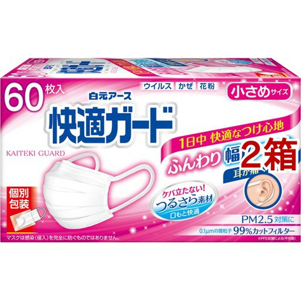 【夜の市★合算2千円超で送料無料対象】白元アース 快適ガード マスク 小さめサイズ 60枚入 個別包装 ホワイト(4902407581365) 1,205 ~