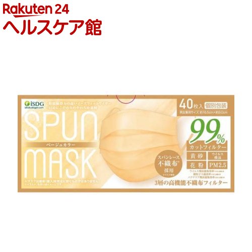 お店TOP>衛生医療>マスク>マスク全部>個包装マスク>スパンレース不織布カラーマスク ベージュ (40枚入*2箱セット)【スパンレース不織布カラーマスク ベージュの商品詳細】●ウイルス飛沫、花粉等のカットだけでなく、ファッション性を兼ね備えたカラーの不織布マスクです。 ●3層の不織布でしっかりガード。 ●形状保持ワイヤーで鼻のラインにぴったりフィット。 ●やわらかい平ゴムを採用し、耳が痛くなりにくい。 ●口元やわらか素材。 ※マスクは感染(侵入)を完全に防ぐものではありません。 【使用方法】(1)プリーツを伸ばし、マスクを完全に広げます。 (2)顔に当て、ノーズフィットを鼻のカーブにぴったりと合わせます。 (3)顔にフィットさせながら、耳にひもをかけてください。 (4)ひもを外側にしてかけてください。 【スパンレース不織布カラーマスク ベージュの原材料】・マスク表地:ポリエステル、マスク裏地・フィルター:ポリプロピレン、耳ゴム:ナイロン・ポリエステル・ポリウレタン、ノーズフィット:PE樹脂【規格概要】・男女兼用サイズ:縦(約)16.5cm*横(約)9.0cm・個包装【注意事項】・本商品は有毒な粉塵やガス等を防ぐ目的では使用できません。 ・本商品の使用により、かゆみ、かぶれ・発疹等が生じた場合は使用を中止し、医師または薬剤師にご相談ください。 ・本商品の使用中、臭いで気分が悪くなった場合には使用を中止してください。 ・乳幼児の手の届かない所に保管してください。 ・高温多湿な場所や、直射日光の当たる場所を避けて保管してください。 ・マスクを着用中、耳に痛みや不快感を感じた場合には使用を一時中断してください。 ・耳ゴムがきつい場合には、軽く伸ばしてお使いください。 ・マスクは使い切りタイプですので、洗って再利用はしないでください。 ・非常に柔らかい素材を使用しておりますので、使用状況に応じて不織布の毛羽立ちなどが見られる場合がございます。 健康を害することはございませんが、新しいものをお使いください。 ・マスクの色合いに若干の差異がありますがご了承ください。 【原産国】中国【ブランド】医食同源ドットコム【発売元、製造元、輸入元又は販売元】医食同源ドットコム※説明文は単品の内容です。 リニューアルに伴い、パッケージ・内容等予告なく変更する場合がございます。 予めご了承ください。 ・単品JAN:4562355180791医食同源ドットコム336-0027 埼玉県さいたま市南区沼影1-10-1ラムザタワー7階0120-362-916広告文責:楽天グループ株式会社電話:050-5577-5042[マスク/ブランド:医食同源ドットコム/] スパンレース不織布カラーマスク ベージュ(40枚入*2箱セット)【医食同源ドットコム】 1,591 ~