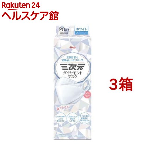 三次元ダイヤモンドマスク フリーサイズ ホワイト(20枚入*3箱セット)【三次元マスク】 2,588 ~