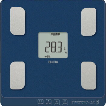 毎日の測定を継続するために、継続状況に合わせて画面上の表情表示が変化。 毎日の測定を応援します。 体重が急激に変化した場合にお知らせする「体重急激増減お知らせ機能」付き。 触れるだけで作動する静電式タッチボタンを採用。 乗るだけで測定ができる。 立てかけ収納OK。 サイズ幅286×高さ25×奥行293mm個装サイズ:34.4×4.1×33.5cm重量約1.7kg個装重量:2100g素材・材質ABS、PE、強化ガラス、ステンレス仕様保証期間:1年計量範囲:150kg最小表示:0〜100kgまで100g、100〜150kgまで200g体脂肪率:0.1%単位、対象年齢/6〜99才(判定:やせ/ー標準/+標準/軽肥満/肥満)BMI:0.1単位、対象年齢:6〜99才内臓脂肪レベル:0.5レベル単位、対象年齢/18〜99才(判定:標準/やや過剰/過剰)筋肉量:0〜100kgまで100g、100〜150kgまで200g単位、対象年齢/6〜99才(判定:少ない/標準/多い(18〜99才))基礎代謝量:1kcal/日単位、対象年齢/18〜99才(判定:少ない/標準/多い)体内年齢:1才単位、対象年齢/18〜99才過去メモリー:前回値表示文字高:29mm登録人数:5人その他の機能:アスリートモード電源:DC6V単4形乾電池4本付属品取扱説明書(保証書付き)、お試し用電池(単4形乾電池4本)生産国中国fk094igrjs TANITA タニタ 体組成計 ナイトブルー BC-758 8,680 ~