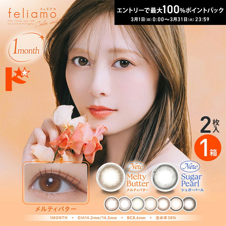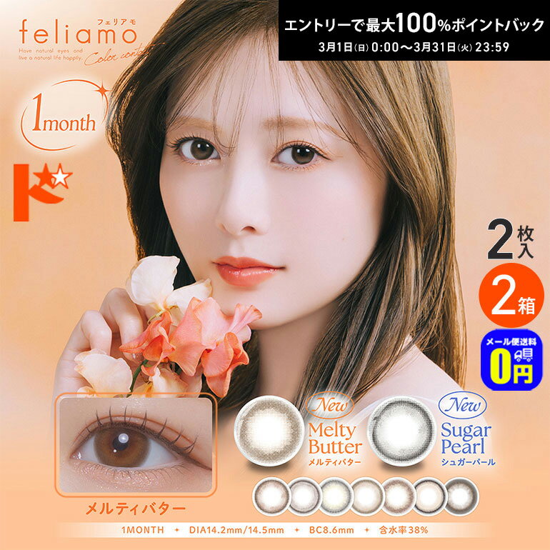 フェリアモ feliamo マンスリー 2枚入り 2箱 1month monthly ワンマンス コンタクトレンズ 1ヶ月交換 白石麻衣 カラコン 度あり 度なし 終日装用 ポスト投函 3,300 ~