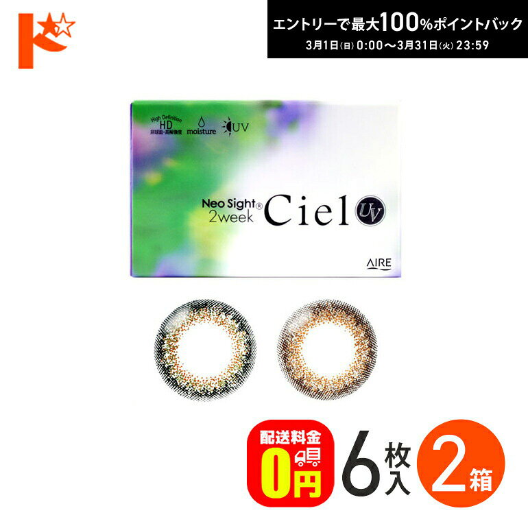 最大100%ポイントバック!3/31の23:59まで♪◆メール便送料無料◆ネオサイト2ウィークシエルUV 6枚入 1箱 2週間交換 2week カラコン 2,748 ~