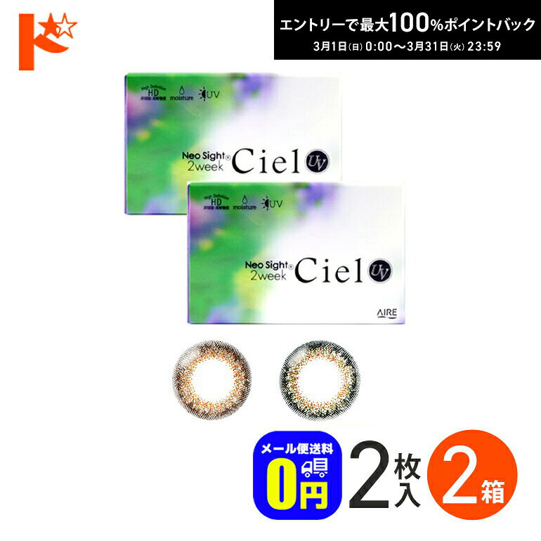 最大100%ポイントバック!3/31の23:59まで♪◆メール便送料無料◆ネオサイト2ウィークシエルUV 2枚入 2箱セット 2週間交換 2week カラコン 2,138 ~