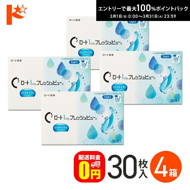販売価格及びサービスにつきましては、予告なく変更する場合がございます。 予めご了承くださいませ。 関連キーワード 1day フレッシュビュー リッチモイスト 1日使い捨て コンタクトレンズ ワンデー 高含水 クリアコンタクトレンズ UVプロテクト機能 紫外線 うるおい ROHTO 酸素 清潔 PMPC PEG 近視 遠視 UVカット ロート製薬 ドリコンロート 1day フレッシュビュー リッチモイスト 内容:1箱30枚入 装用期間:1日使い捨て DIA(レンズ直径):14.2mm BC(ベースカーブ):8.6mm 含水率:58% PWR(パワー):+0.25〜+3.00(0.25step)、-0.25〜-6.00(0.25step)、-6.50〜-12.00(0.50step) ソフトコンタクトレンズ分類:グループIV 高度管理医療機器承認番号:22800BZI00037A02 広告文責:インターオプチカル(TEL:022-211-6788) 製造販売元:ロート製薬株式会社 区分:高度管理医療機器 ※当店は改正薬事法に基づいた法令遵守体制を実践しています。 (「高度管理医療機器等販売業許可証」取得、「管理者」資格を2名取得、医療機器販売業の構造設備基準検査合格) 最大100%ポイントバック!3/31の23:59まで♪ロート 1day フレッシュビュー リッチモイスト 30枚入 4箱セット 1日使い捨てコンタクトレンズ 高含水 クリアコンタクトレンズ UVプロテクト機能 紫外線 うるおい ROHTO ロート製薬 【送料無料】 8,900 ~