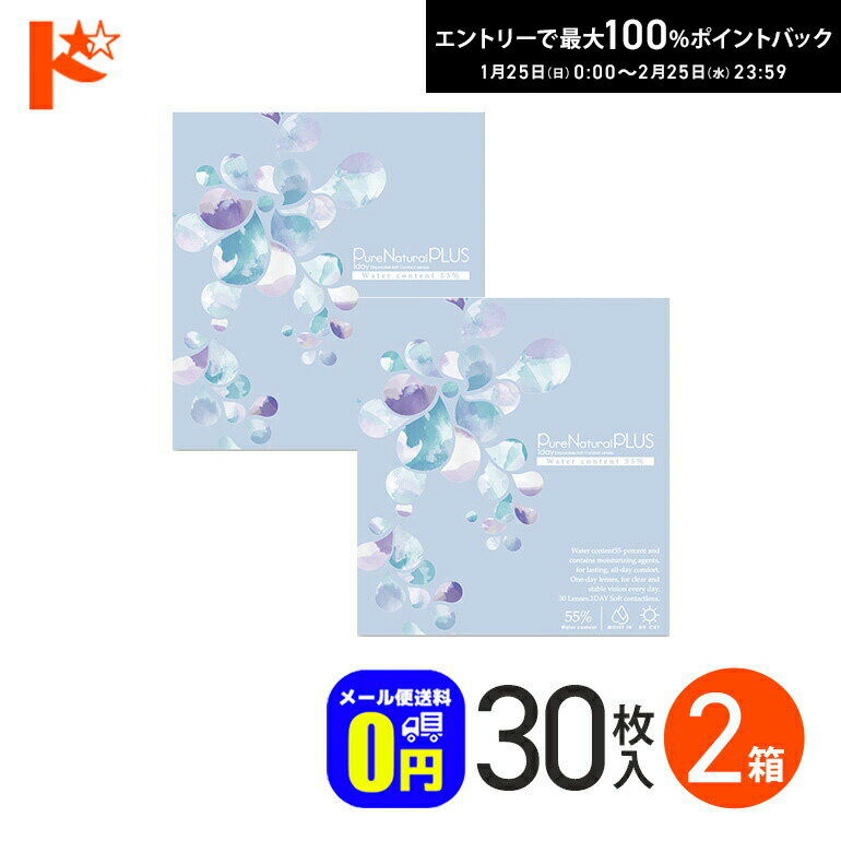 ※左右1箱ずつ、計2箱のお届けとなります。 Pure Natural PLUS 1day (1)紫外線カット 様々なトラブルの原因となる紫外線をカットする成分を配合。 (2)うるおい成分配合 保存液にヒアルロン酸の約2倍の保水力を持つMPCポリマーを配合。 (3)薄型のエッジデザイン 厚みを抑えることで異物感を軽減。 (4)高含水レンズ 水分を多く含むため、目の負担が少ないやさしいレンズ。 (5)優れた装用感 素材がやわらかいので目になじみやすい。 交換時期 1日交換型(ワンデータイプ) 商品名 Pure Natural PLUS 55%(ピュアナチュラルプラス55%) 販売名 ピュアナチュラル55UVM 容量 30枚入り スペック BC(ベースカーブ): 8.70 P(度数): -0.50〜-6.00(0.25ステップ)、 -6.50〜-10.00(0.50ステップ) DIA(サイズ): 14.2mm 含水率 55% 医療機器承認番号 22900BZX00392A10 製造販売元 粧美堂様々なセットをご用意致しました。 ご使用頻度や、ご予算によってお好みのセットをお選び下さい。 画像クリックで各販売ページが表示されます。 セット内容 30枚入り×1箱 30枚入り×2箱 30枚入り×4箱 30枚入り×6箱 30枚入り×8箱 30枚入り×10箱 30枚入り×12箱 使用期間※左右別度数の場合 約0.5ヶ月(15日分) 約1ヶ月(30日分) 約2ヶ月(60日分) 約3ヶ月(90日分) 約4ヶ月(120日分) 約5ヶ月(150日分) 約6ヶ月(180日分) 粧美堂 Pure Natural PLUS 1day 55% 30枚入 2箱セット(左右1箱ずつ) SHO-BI ピュア ナチュラル プラス ワンデー 高含水レンズ 2,608 ~