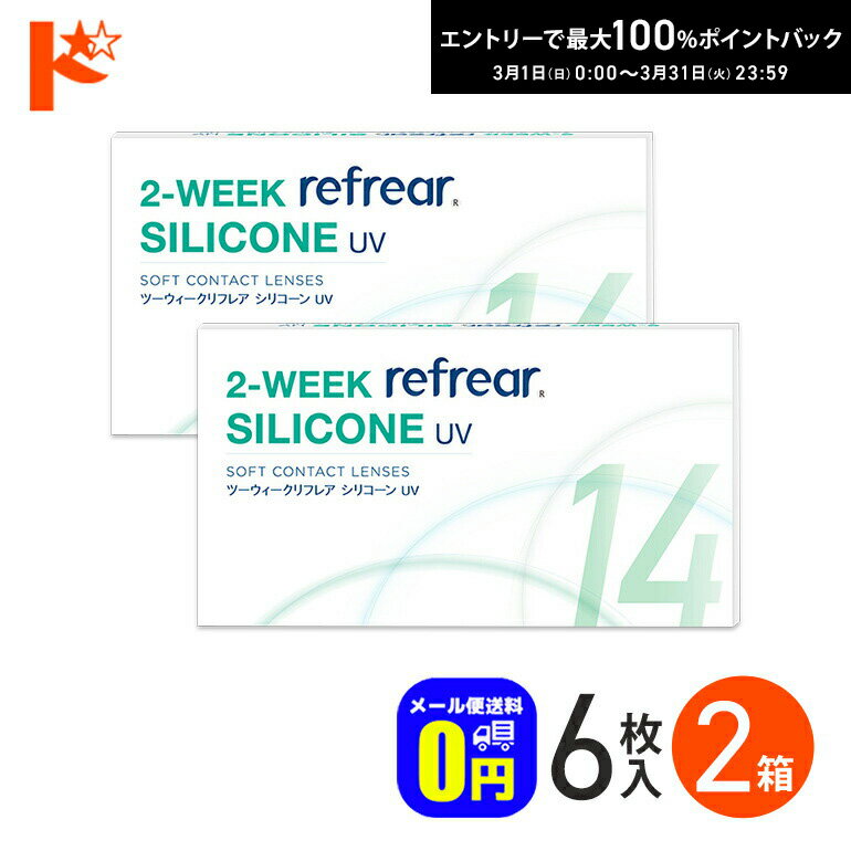 最大100%ポイントバック!3/31の23:59まで♪◆メール便送料無料◆ 2ウィークリフレア シリコーンUV 6枚入 2箱セット シリコーンハイドロゲル 2週間交換 シリコン ソフトコンタクトレンズ シリコーン クリアコンタクトレンズ refrear SILICONE UV フロムアイズ 3,696 ~