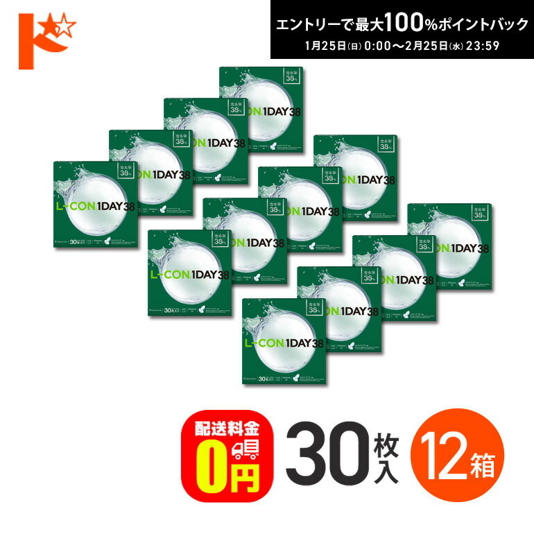 最大100%ポイントバック!2/25の23:59まで♪【送料無料】エルコンワンデー38 コンタクトレンズ 30枚入 12箱セット 1day 20,880 ~