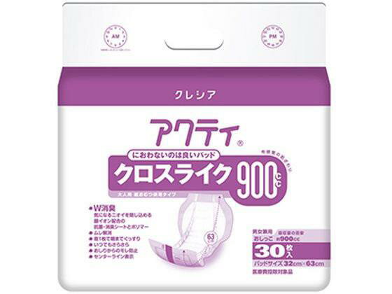 ↑↑↑正確な在庫状況は上記バナー「在庫状況を確認する」をクリックして頂き、必ずご確認ください。 布感覚の通気性シートでムレ解消!夜1枚で朝までぐっすり布感覚の通気性シートでムレ解消ワイド&ダブルの吸収体で尿も広がる軟便のモレもしっかりガードし、夜1枚で朝までぐっすり立体ギャザーシートの厚みをアップすることによりワイド部分からの逆戻りが減少身体の中心に合わせやすいカラーのセンターライン気になるニオイを閉じ込める銀イオン配合の抗菌・消臭シートポリマーお肌さらさらシートで尿をすばやく吸収、逆戻りも防止吸収量:900cc男女兼用●パッドサイズ:32×63cm●材質:表面材/ポリオレフィン系不織布、吸水材/綿状パルプ・吸収紙・高分子吸水材、防水材/ポリエチレンフィルム、伸縮材/ポリウレタン、結合材/ホットメルト粘着剤、外装材/ポリエチレン●注文単位:1パック(30枚)※メーカーの都合により、パッケージ・仕様等は予告なく変更になる場合がございます。 クレシア アクティ クロスライク900 30枚 2,359 ~