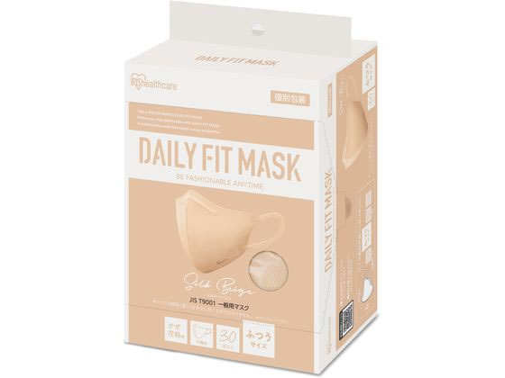 【マラソン限定★ポイント2倍】【お取り寄せ】アイリス DAILYFITMASK立体 ふつう 30枚入 シルクベージュ マスク 鼻 のど対策 メディカル 1,379 ~