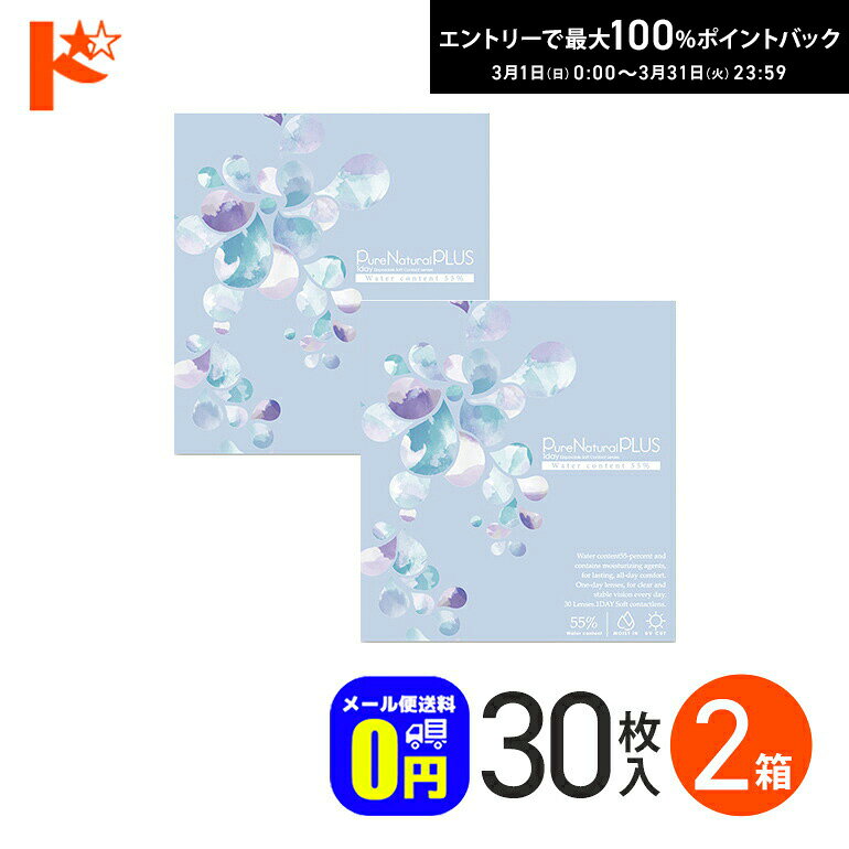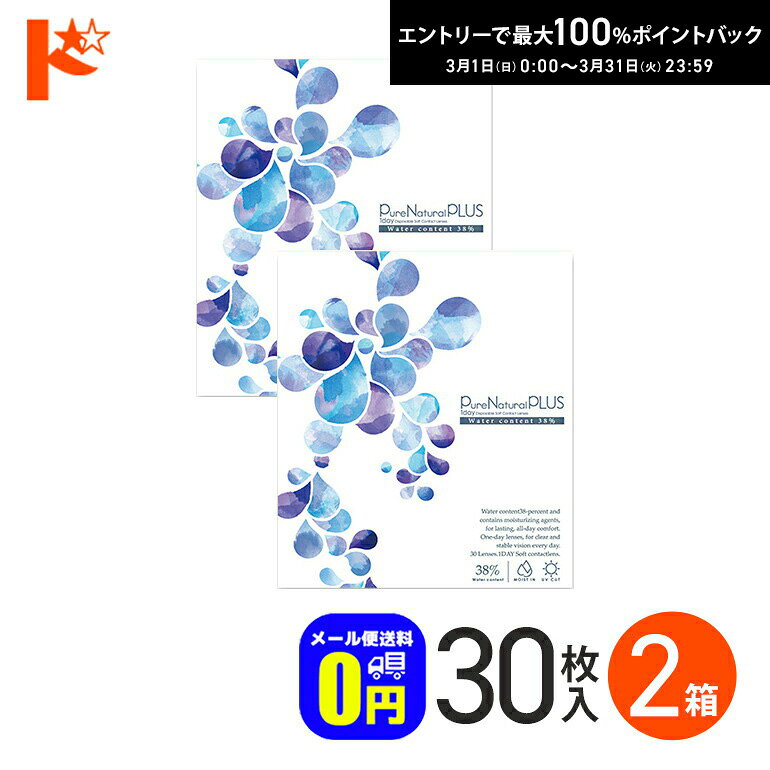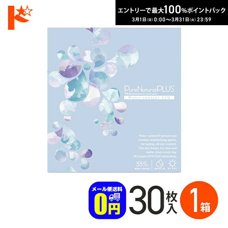 Pure Natural PLUS 1day (1)紫外線カット 様々なトラブルの原因となる紫外線をカットする成分を配合。 (2)うるおい成分配合 保存液にヒアルロン酸の約2倍の保水力を持つMPCポリマーを配合。 (3)薄型のエッジデザイン 厚みを抑えることで異物感を軽減。 (4)高含水レンズ 水分を多く含むため、目の負担が少ないやさしいレンズ。 (5)優れた装用感 素材がやわらかいので目になじみやすい。 交換時期 1日交換型(ワンデータイプ) 商品名 Pure Natural PLUS 55%(ピュアナチュラルプラス55%) 販売名 ピュアナチュラル55UVM 容量 30枚入り スペック BC(ベースカーブ): 8.70 P(度数): -0.50〜-6.00(0.25ステップ)、 -6.50〜-10.00(0.50ステップ) DIA(サイズ): 14.2mm 含水率 55% 医療機器承認番号 22900BZX00392A10 製造販売元 粧美堂様々なセットをご用意致しました。 ご使用頻度や、ご予算によってお好みのセットをお選び下さい。 画像クリックで各販売ページが表示されます。 セット内容 30枚入り×1箱 30枚入り×2箱 30枚入り×4箱 30枚入り×6箱 30枚入り×8箱 30枚入り×10箱 30枚入り×12箱 使用期間※左右別度数の場合 約0.5ヶ月(15日分) 約1ヶ月(30日分) 約2ヶ月(60日分) 約3ヶ月(90日分) 約4ヶ月(120日分) 約5ヶ月(150日分) 約6ヶ月(180日分) 粧美堂 Pure Natural PLUS 1day 55% 30枚入 1箱 SHO-BI ピュア ナチュラル プラス ワンデー 高含水レンズ 1,304 ~