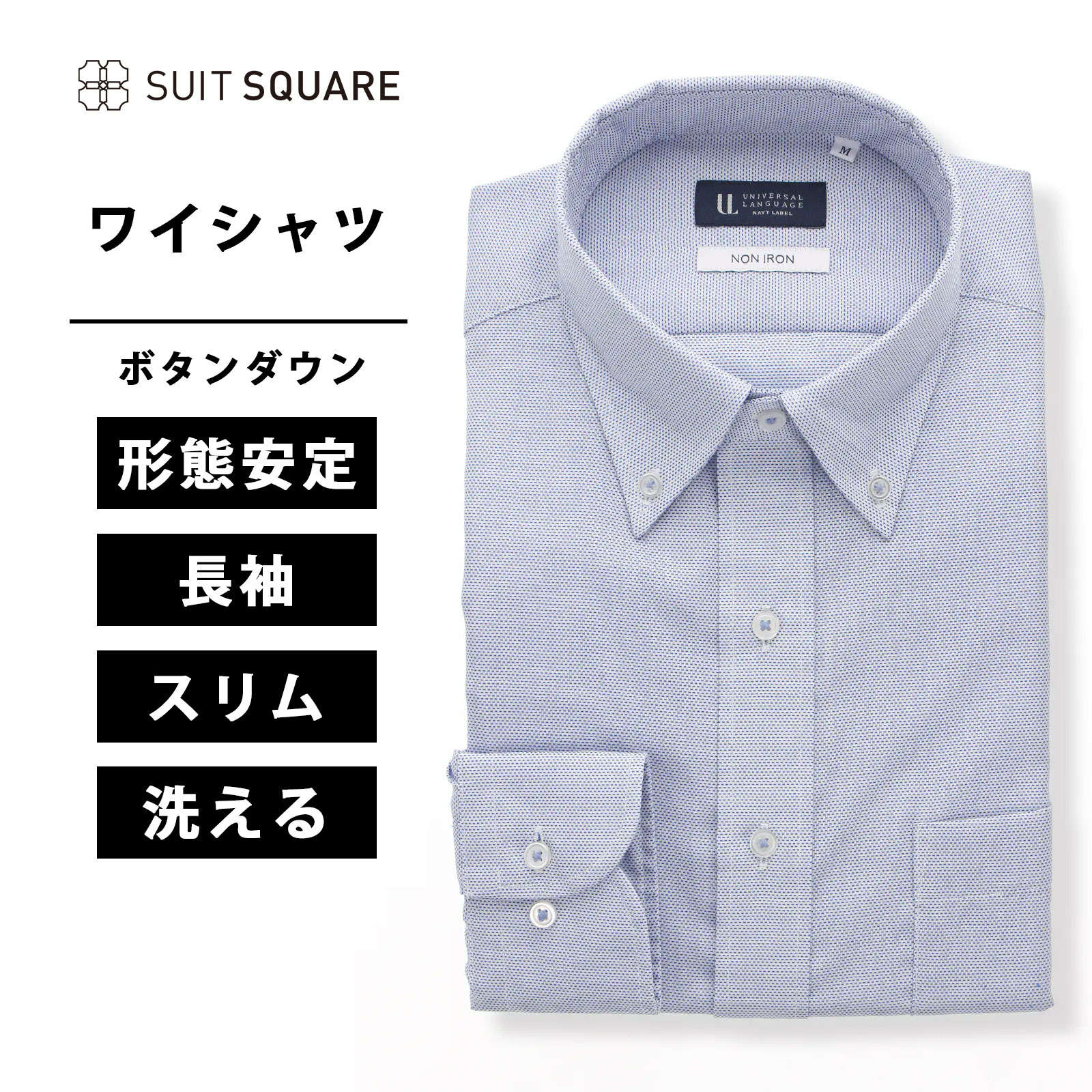 メンズ WEB限定 ワイシャツ 長袖 COOL MAX ノンアイロン 織柄 FIT ドレスシャツ ネイビー系 スーツスクエア ボタンダウン オフィス ビジネス 形態安定 形状記憶 胸ポケット付き 3,293 ~