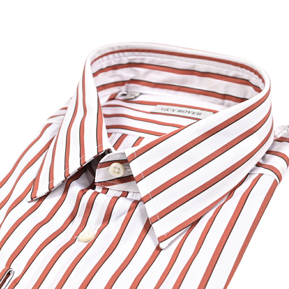 DETAIL商品データGUY ROVER / ギローバーGUY ROVER(ギローバー)は、1967年に北イタリアのヴェチェンツァで創業したシャツ専業ブランド。 「オールマシンメイドによる最高峰のシャツ」と評され、徹底した品質・生産管理下で製造されています。 マシンメイドの精密さを持ちながら、それを感じさせないほどの快適な着心地とクオリティの高さが大きな特徴です。 最大の魅力は、身体のラインに沿うように立体的なカッティングで仕立てられた、洗練された美しいシルエット。 背ダーツがなくてもスッキリと見える細身のフィット感は、上品な大人の印象を与えます。 ■品名:シャツ■品番:3650 V2420 541231■状態:新品未使用原産国Made in ITALY素材コットン 100%カラー・柄ホワイト×オレンジ / ストライプ備考□国内参考価格 28,000円(税抜)□仕様長袖レギュラーカラーSIZEサイズ/寸法首回り肩幅身幅胴幅着丈袖丈【39】S-M(48)サイズ程度39 cm42 cm52 cm47.5 cm73 cm62.5 cmギローバー すべての商品はこちらギローバー GUYROVER首回りサイズから選ぶPICK UPこの商品を見ている人はこちらもチェックオリアン バルバ ピーティートリノベルウィッチ タリアトーレ チルコロ 19012026 春夏新作アイテム ギローバー GUY ROVER ドレスシャツ ワイシャツ レギュラーカラー 長袖 メンズ コットン 100% ストライプ ホワイト×オレンジイタリア ブランド MADE IN ITALY 30,800 ~