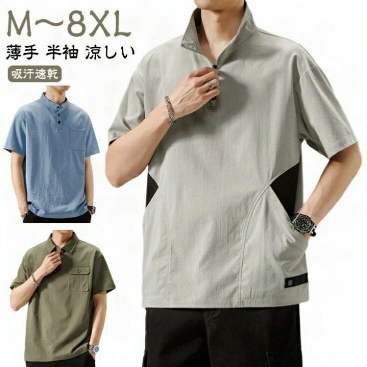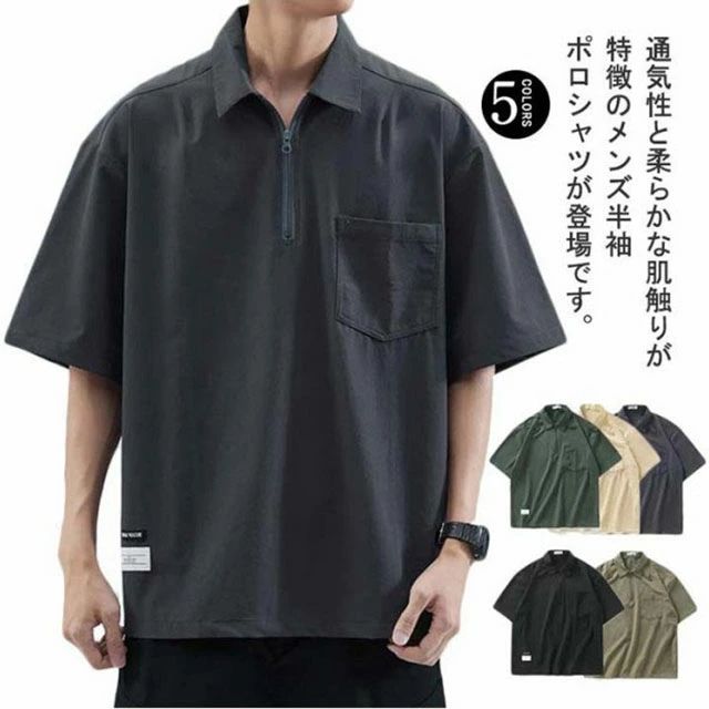 メンズ ゆったり 体型カバー 夏 ポロシャツ 大きサイズ 前ハーフジッパー ジッパー付き 半袖 ポケット付き UVケア Tシャツ 紫外線対策 tシャツ クルーネック スポーツ 吸汗速乾 吸水速乾 薄手 カジュアルポロシャツ ワーク 2,871 ~