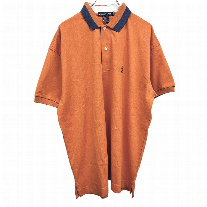 【全品ポイント10倍|開催中|〜02/10(火)01:59まで\2月お買い物マラソン/100円〜2,000円OFFクーポン配布中】ノーティカ 【新品】NAUTICA ポロシャツ Tシャツ生地 胸に刺繍 半袖 ポケット無し 裾スリット 綿100% M オレンジ オレンジ×紺 メンズ 6,900 ~
