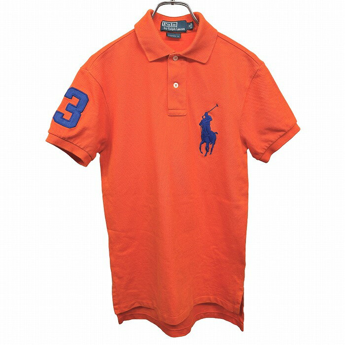 【全品ポイント10倍|開催中|〜02/10(火)01:59まで\2月お買い物マラソン/100円〜2,000円OFFクーポン配布中】【中古】ポロバイラルフローレン ポロシャツ 鹿の子 タイトフィット ビッグポニー 半袖 ロングテール 綿100% SS XS オレンジ オレンジ×青 メンズ 5,497 ~
