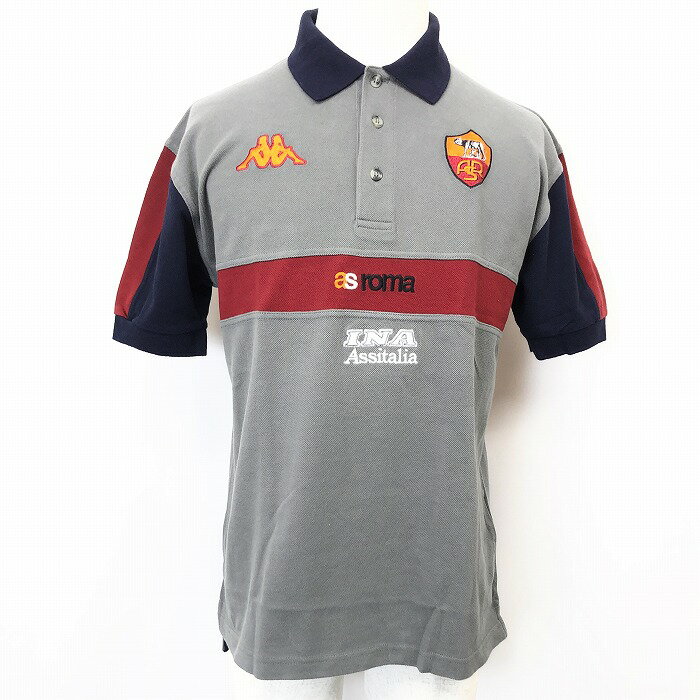 【全品ポイント10倍|開催中|〜02/10(火)01:59まで\2月お買い物マラソン/100円〜2,000円OFFクーポン配布中】【中古】 KAPPA カッパ M メンズ ポロシャツ 鹿の子 切り返し生地 ロゴ刺繍 カットソー 半袖 ロングテール 服 綿100% グレー×レッド×ネイビー 3,050 ~