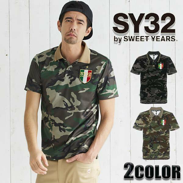SY32 by SWEET YEARS ポロシャツ メンズ 8022 ワッペン付きポロシャツ ハート ブラック 迷彩 カモフラージュ sy32 by sweet years トップス tops スイートイヤーズ サッカー エスワイサーティトゥバイスィートイヤーズ 13,200 ~