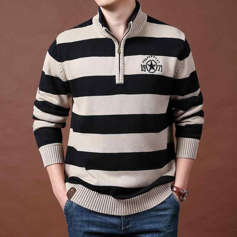 メンズ ファッション 服 男性用 オシャレ シンプル 大人 かっこいい ストリート ハーフ ジップ スタンドカラー ハイネック ストライプセーター 厚手 ミドルエイジ ニット セーター カジュアル ウォッシュ コットンセーター 9,673 ~