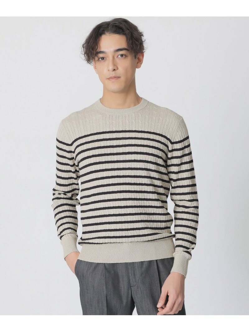 【予約商品について】 ※「先行予約販売中」「予約販売中」をご注文の際は予約商品についてをご確認ください。 ■重要なお知らせ※ 当店では、ギフト配送サービス及びラッピングサービスを行っておりません。 ラッピング・ギフト配送について同時に複数の商品を注文された場合メーカー希望小売価格について置き配についてご利用ガイドPaul Stuart(ポール・スチュアート)ボーダー柄ケーブルクルーネックセーター2026Spring&SummerItemAvailable<素材>コットンベースの清涼感のある表情をアクリルとナイロンを混合して表現した糸を使用した「ボーダーケーブルクルーネックニット」。 通常のコットンよりもザラっとした質感の糸で、程よいドライ感のあるのが特徴です。 ベースをケーブル編にすることで、高級感のある大人の雰囲気にしています。 <デザイン>オーセンティックな全柄ケーブルニットはアメリカや英国のクラシックなブランドには欠かせないアイテムです。 それをボーダーで表現した程よいマリンテイストが春夏のカジュアルスタイルにピッタリです。 身長183B91W74H94着用サイズ:L型番:J1N02761---44-M RF0919【採寸】商品のサイズについて【商品詳細】中国製素材:本体 アクリル39% 綿36% ナイロン25% リブ部分 アクリル36% ナイロン32% 綿30% ポリウレタン2%サイズ:M、L、LL※画面上と実物では多少色具合が異なって見える場合もございます。 ご了承ください。 商品のカラーについて Paul Stuart ボーダー柄ケーブルクルーネックセーター ポール・スチュアート トップス ニット ネイビー ベージュ【送料無料】 29,700 ~